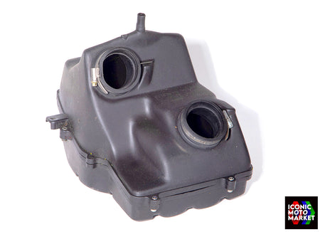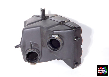 Aprilia Genuine Parts: Air filter box assembly. Good condition, pre-owned. Further inspection reveals regular wear. NOTE: The carburetor boots & clamps, shown attached to the air box (pics #4-5), are NOT included. Sold as-is. All sales are final.