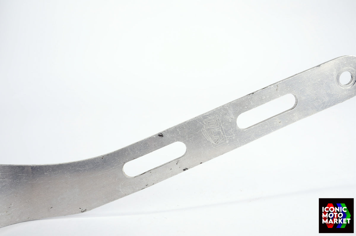 Aprilia Genuine Parts: Exhaust hanger/bracket plate. Good condition, pre-owned. Further inspection reveals mild wear and weathering from use. Sold as shown, as-is. All sales are final.