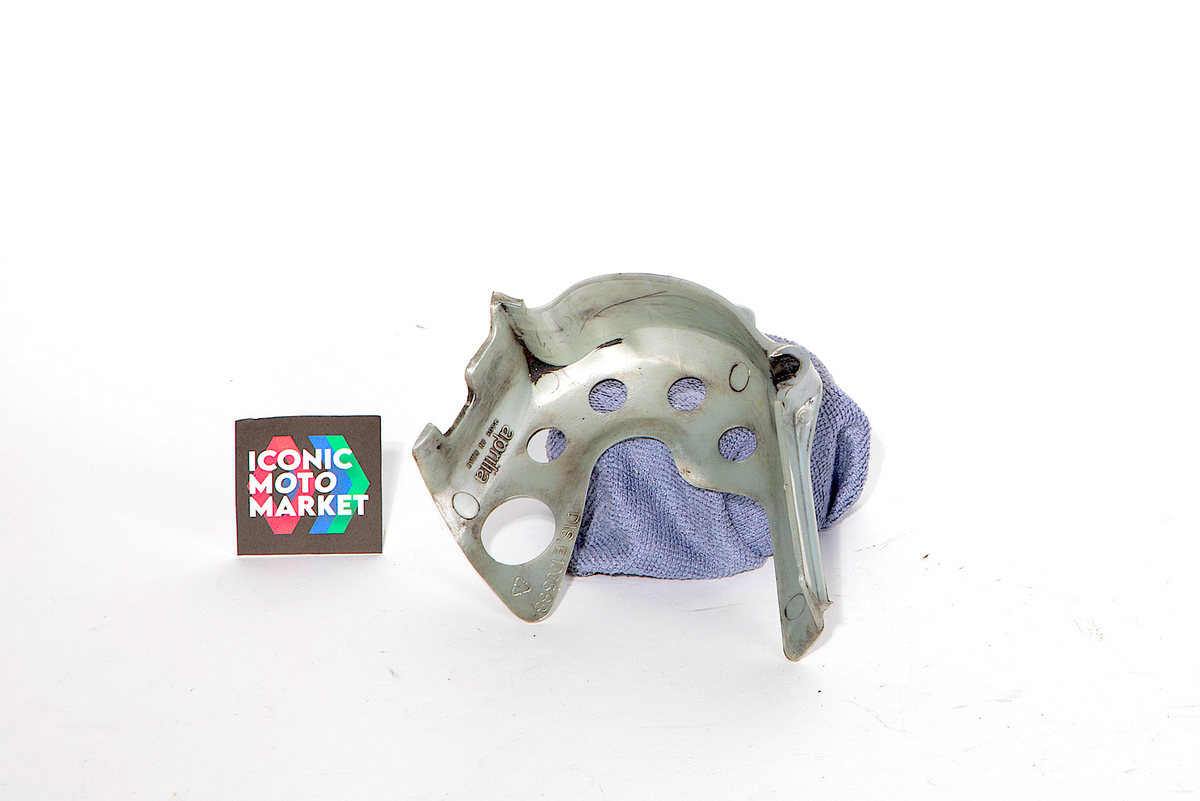 Aprilia Genuine Parts: Sprocket cover. Good condition, pre-owned, with wear. Further inspection reveals some surface imperfections but overall good. Sold as shown, as-is. All sales are final.