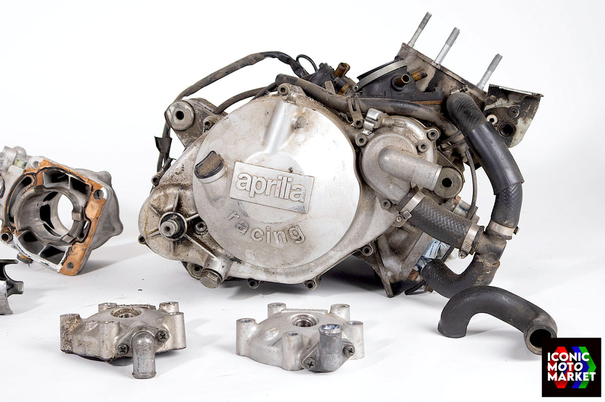Aprilia Genuine Parts: Engine from a 1999 model. Basket case, good for parts. Some parts may be missing. Extra components (not shown) included. Sold as shown, as-is. All sales are final.