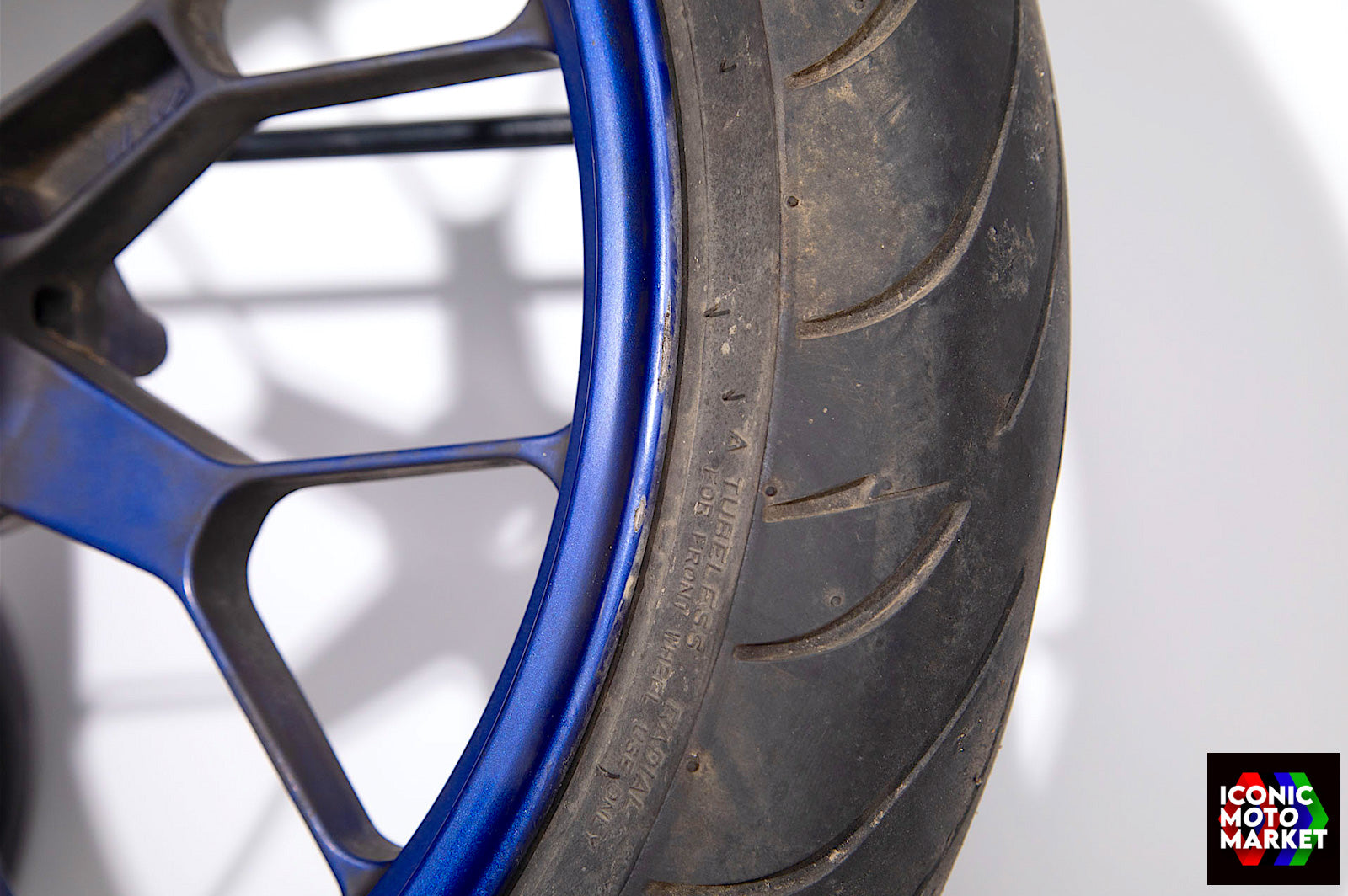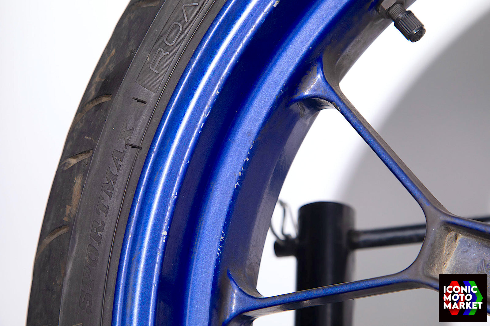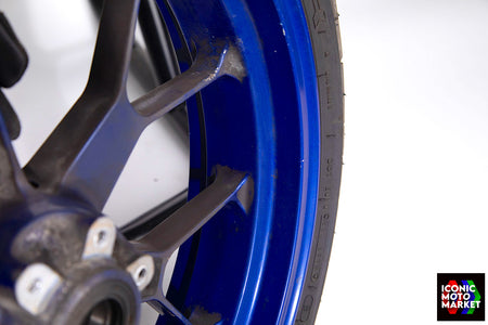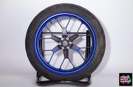 Aprilia Genuine Parts: Front wheel, blue - 17 x 3.5". Good condition, pre-owned, with wear. Investigation of the parts reveal some dirt/grease, scratches around the circumference, all from apparent regular use (see pics #4-6). NOTE: Any wear items, such as bearings - may require replacement. When seeking guidance in such matters, please ensure speaking with a certified mechanic. Sold as shown, as-is.