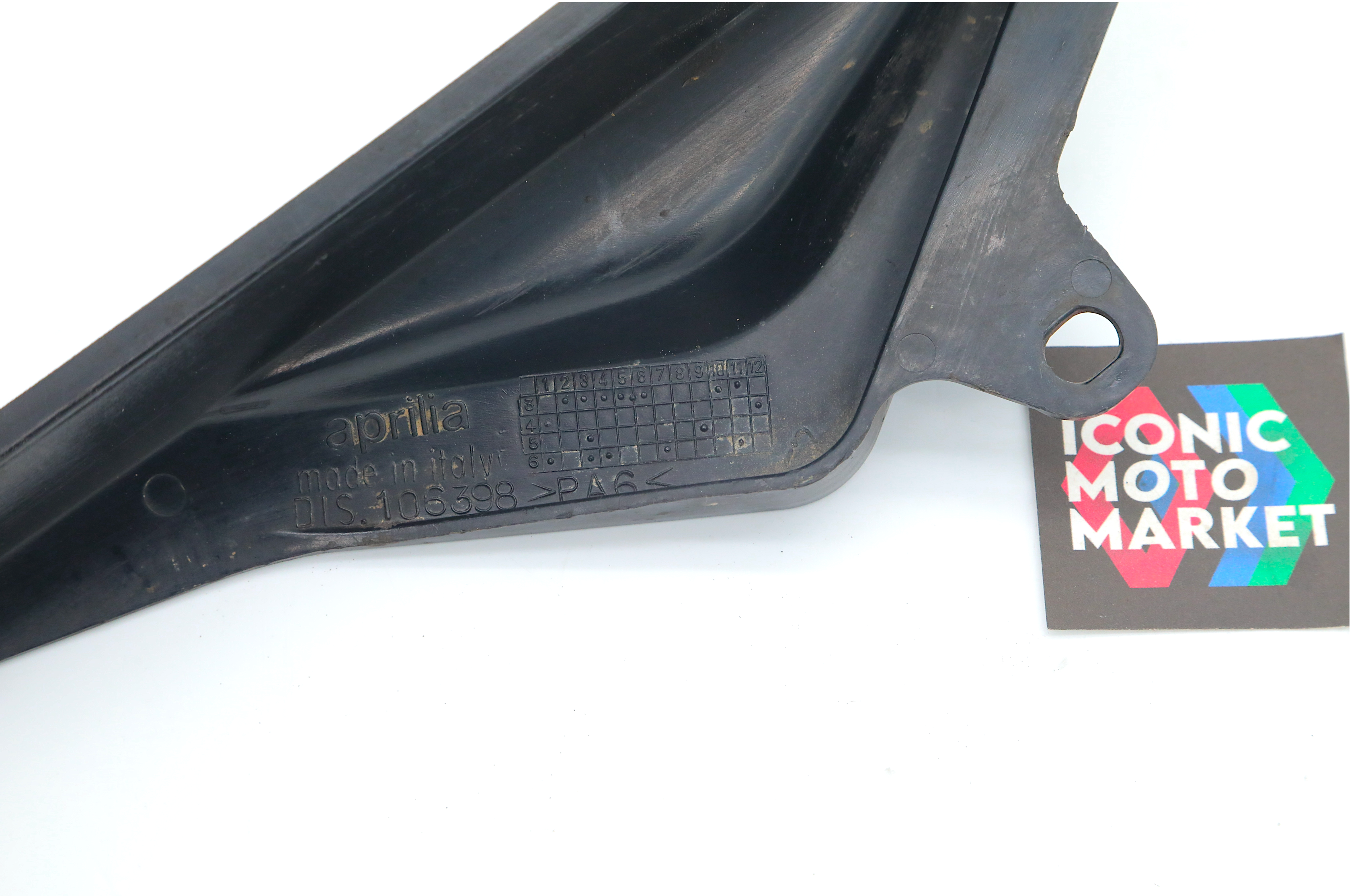 Aprilia Genuine Parts: Chain guard. Good condition, pre-owned, light wear/weathering. This component will clean up nicely. Sold as shown, as-is.