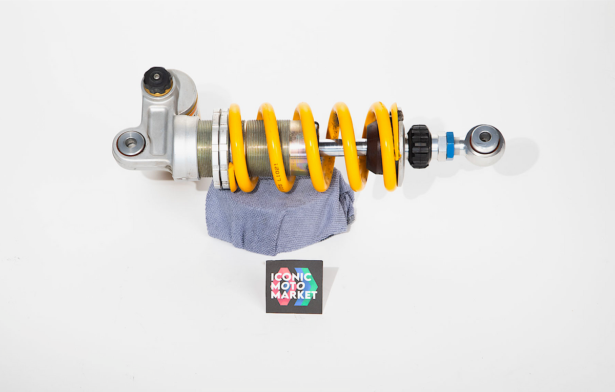 Aprilia Genuine Parts: Quality Ohlins brand - rear shock & linkage parts. Good condition, pre-owned, with average wear. Scratches from use. Sold complete as shown, as-is.