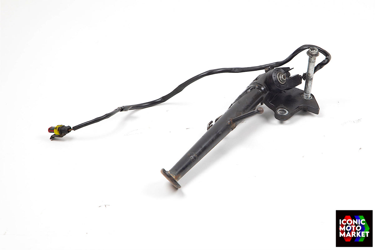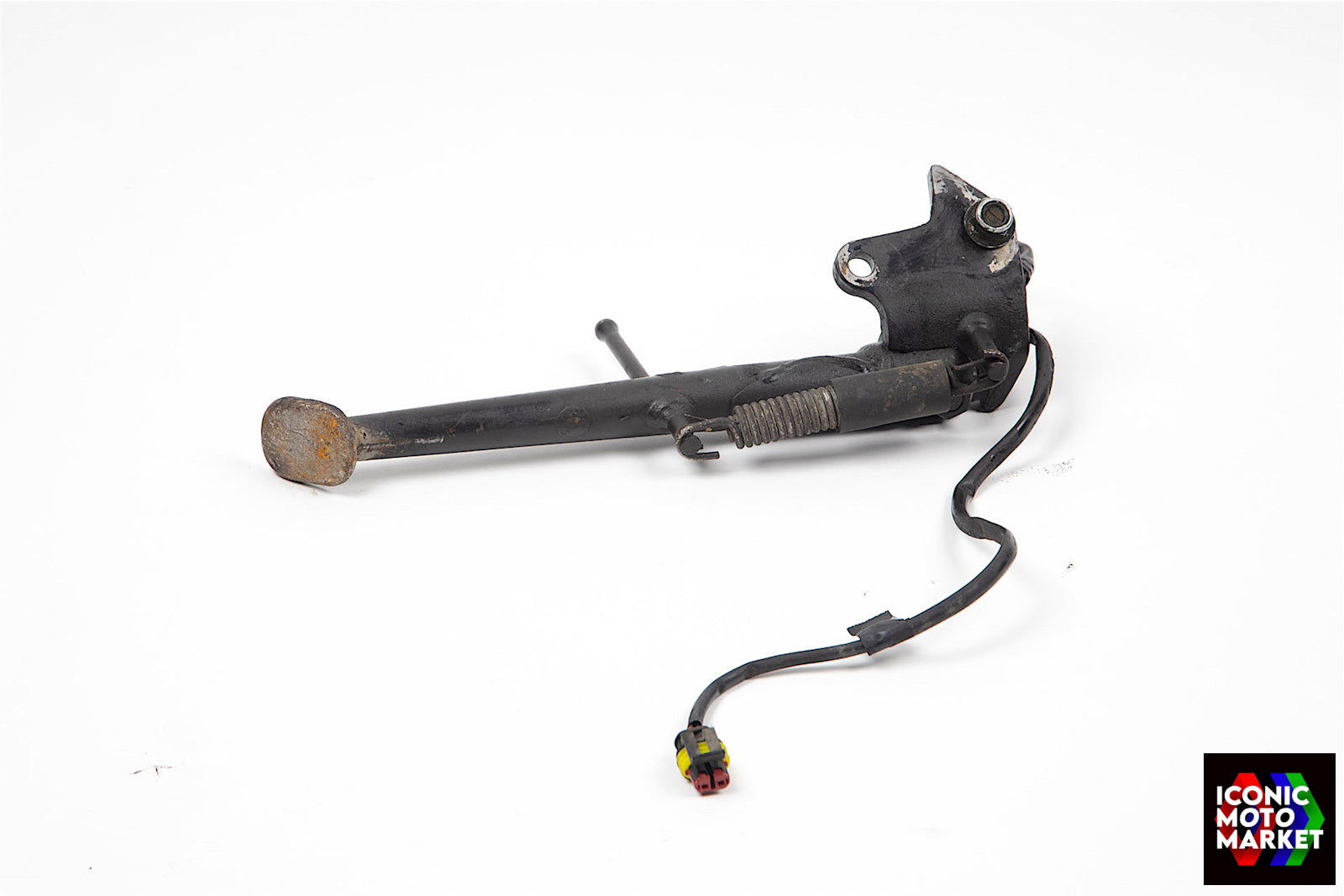 Aprilia Genuine Parts: Side stand assembly, including switch connection. Good condition, pre-owned, with mild wear from use. Further inspection reveals some paint flake and very light surface corrosion. Should clean up nicely. Sold complete as shown, as-is.