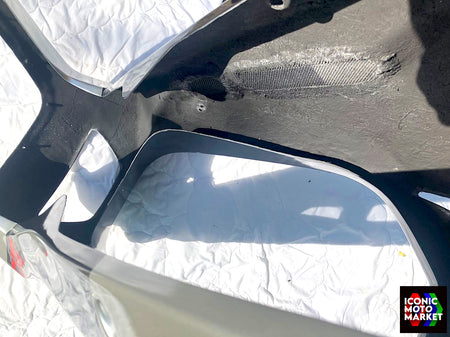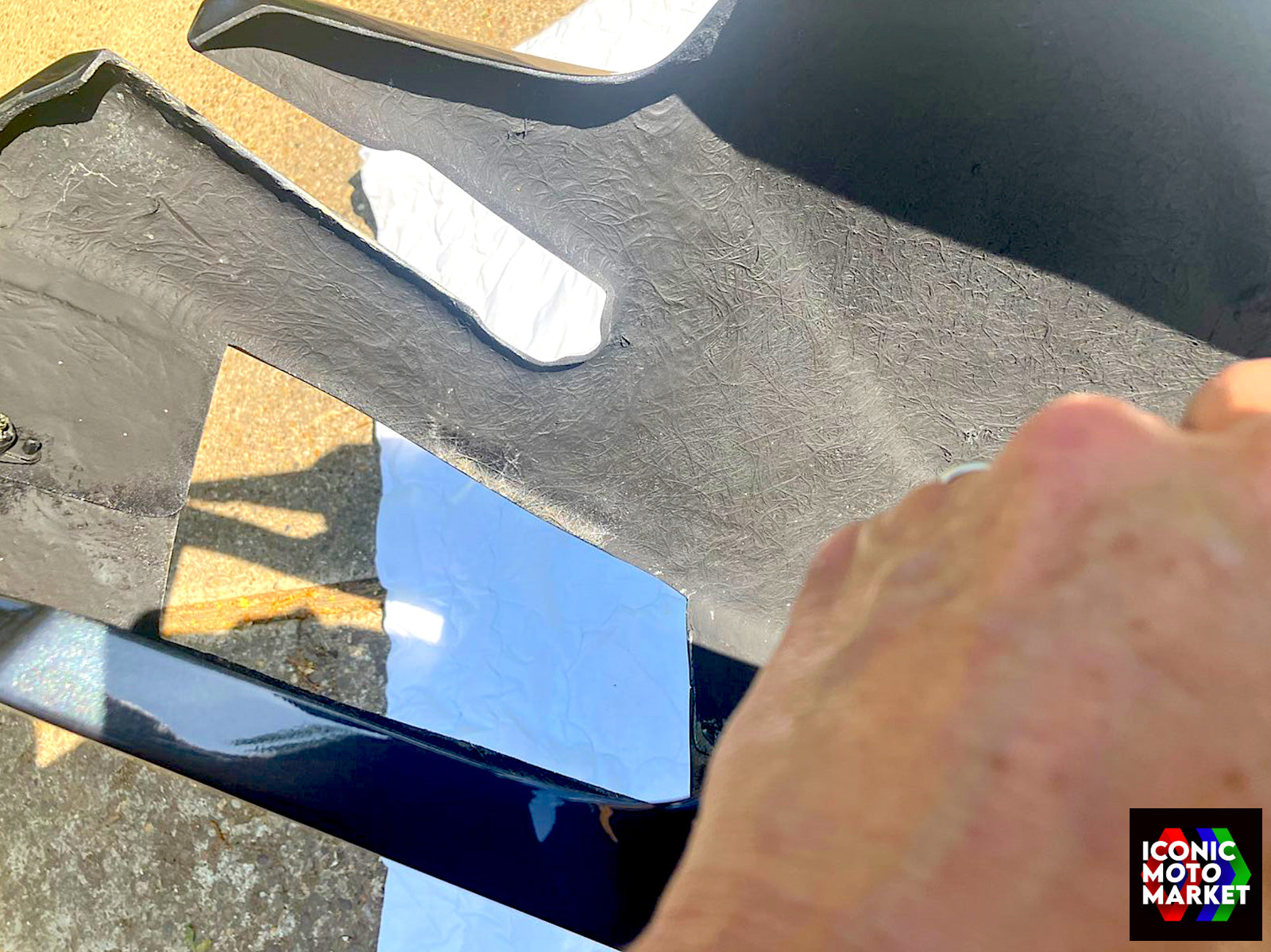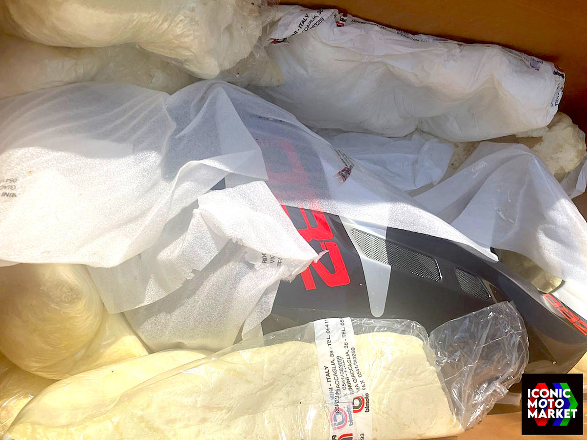 "My father bought a new 1997 Bimota DB2 FE from a dealer in Greensburg, Indiana and owned it for maybe fifteen years. Besides driving service techs crazy because of the bodywork design, the only notable incident happened when being transported to Daytona in an enclosed trailer. Another bike popped loose from its’ straps and damaged the DB2’s main fairing. As you might imagine, Bimota didn’t have ready made replacements in stock, so while the insurance claim and new fairing were processed, there was plenty of time to get the original fairing repaired and reinstalled. The local shop did excellent paint work, so the replacement fairing wasn’t needed when it finally arrived and has stayed in the shipping crate ever since. When my dad eventually sold the DB2, the buyer wasn’t interested in the spare bodywork, so it sat in my dad’s basement for over two decades."