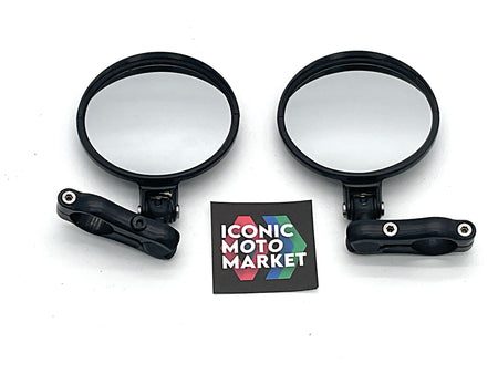 : The Blindsight Bar End Mirror is intended to be used in conjunction with mounted stock mirrors. This little assembly will clean up any blind spots in both your rear and side view. Rubber mounting helps the glass resist vibration.