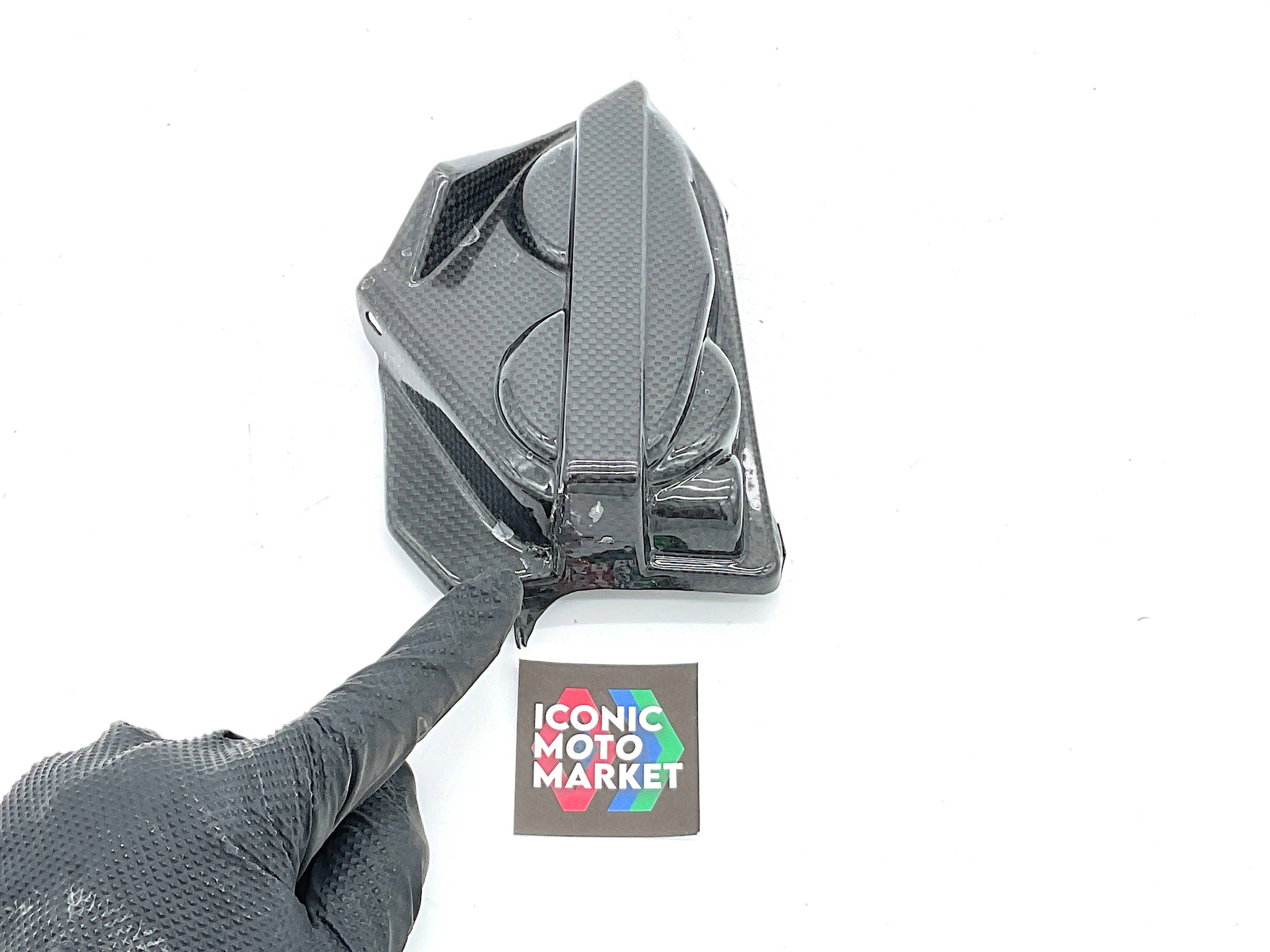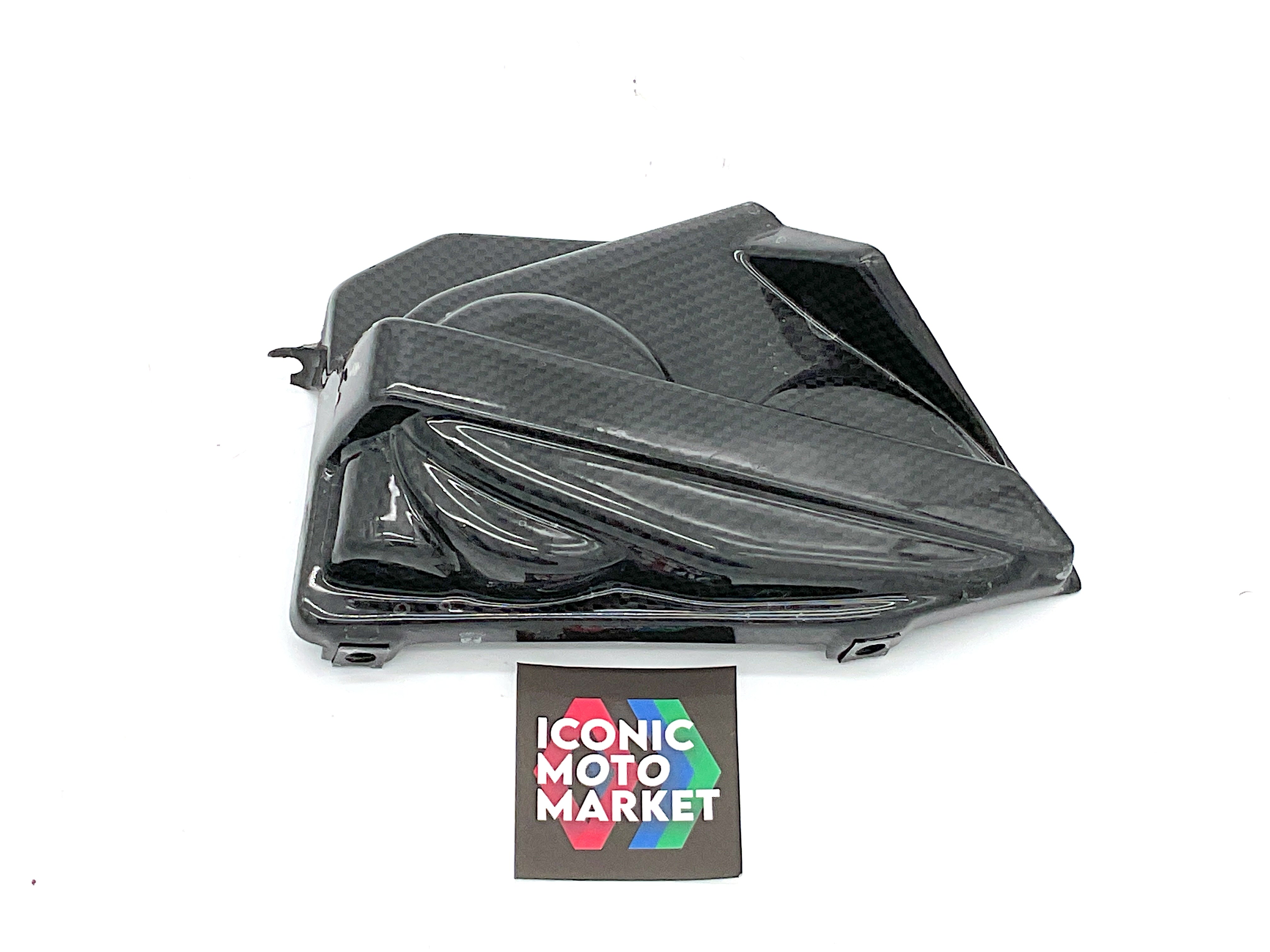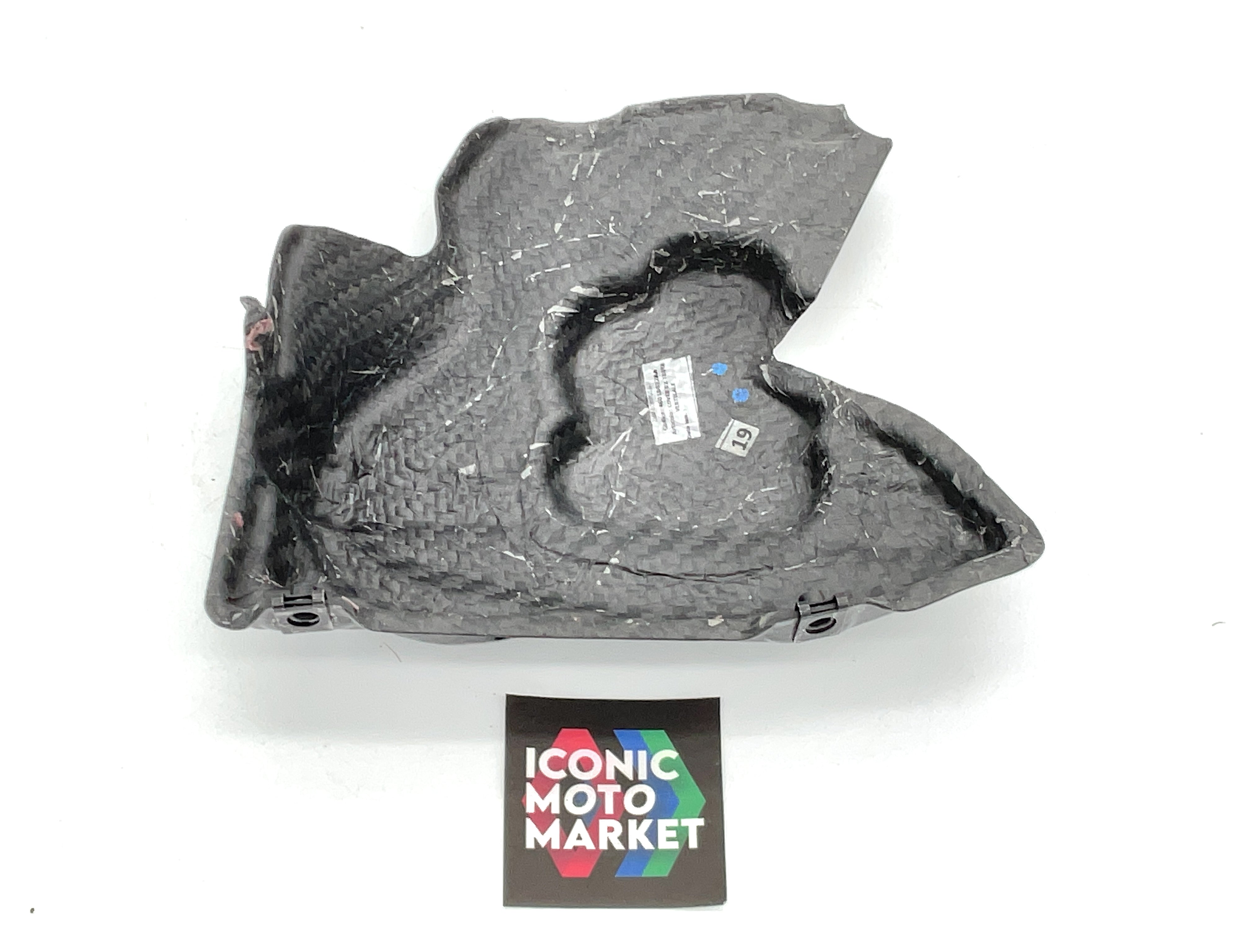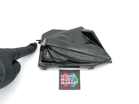 Ducati Genuine Parts - Engine cover - right-side, carbon fiber. Good condition, pre-owned, with wear. One broken tab, and blemish. Sold complete as shown. (see pics)
