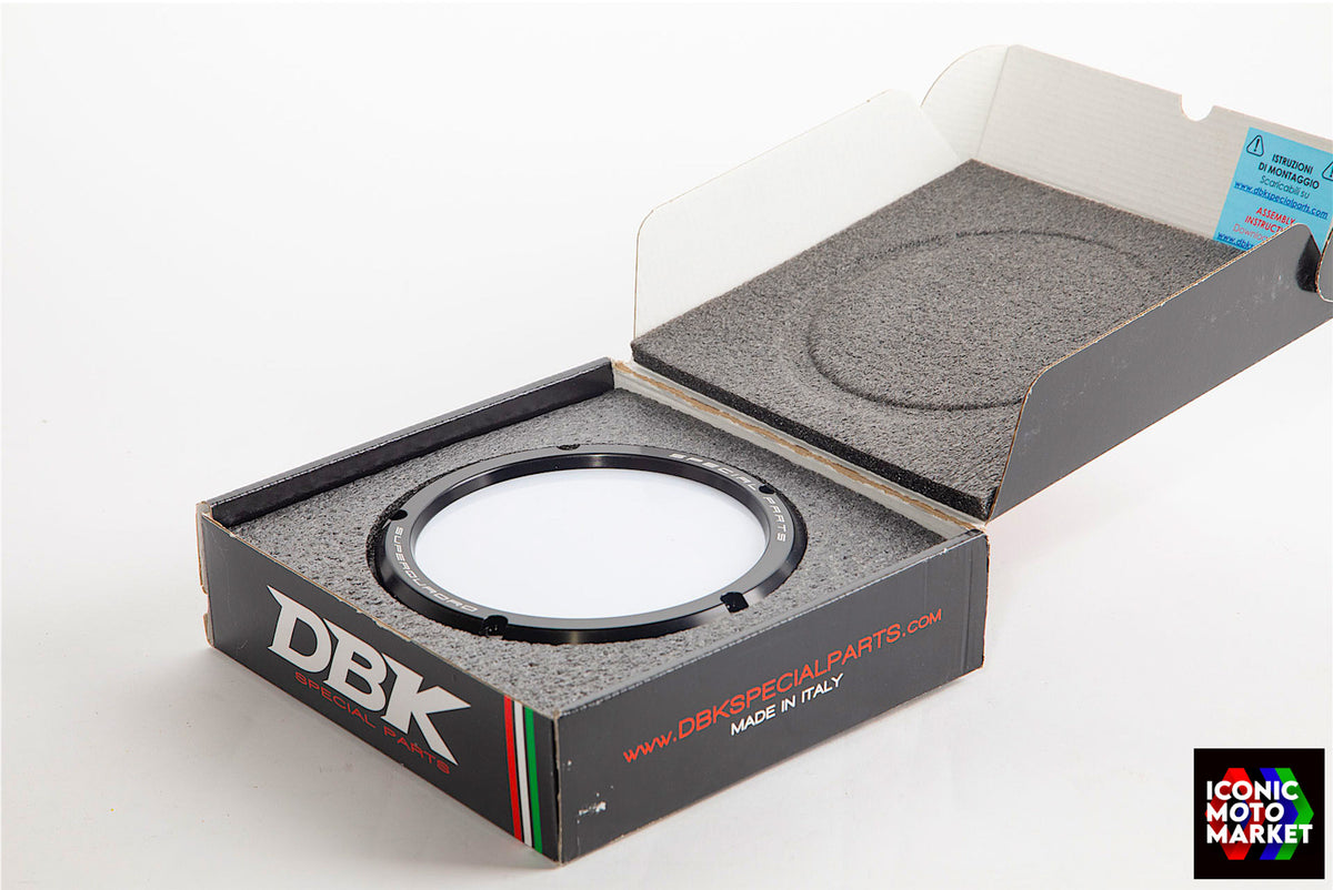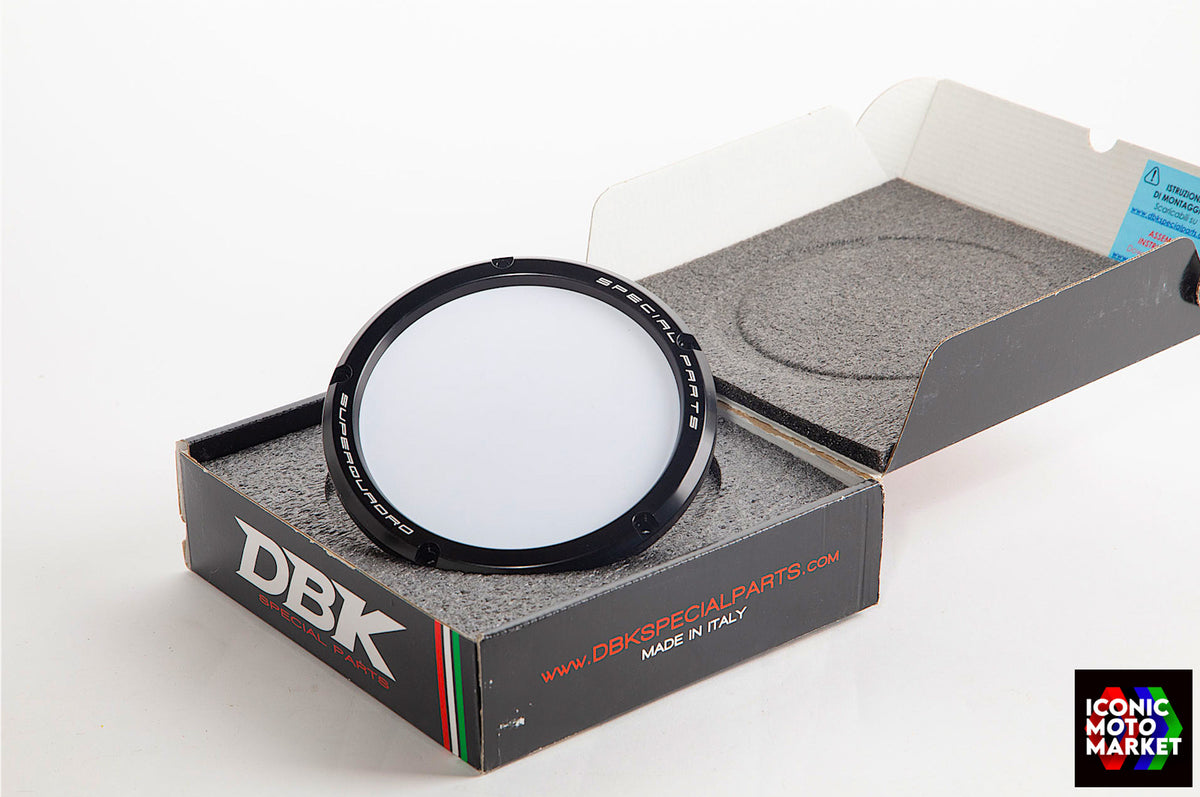 Description: DBK Special Parts, clear clutch cover - Made in Italy. New-in-box. The unit was partially displayed, with the original box opened, for photographic purposes only.