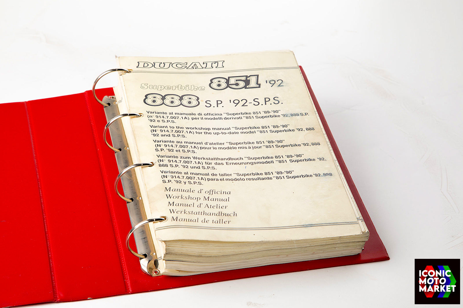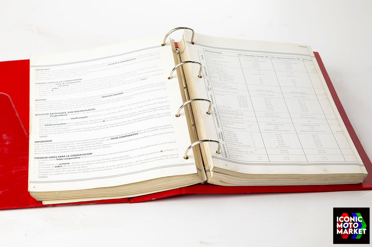 Ducati Genuine Parts: Workshop manual, binder format. Good condition, pre-owned. Further inspection reveals some slight imperfections to the outer binder. Sold as shown, as-is.