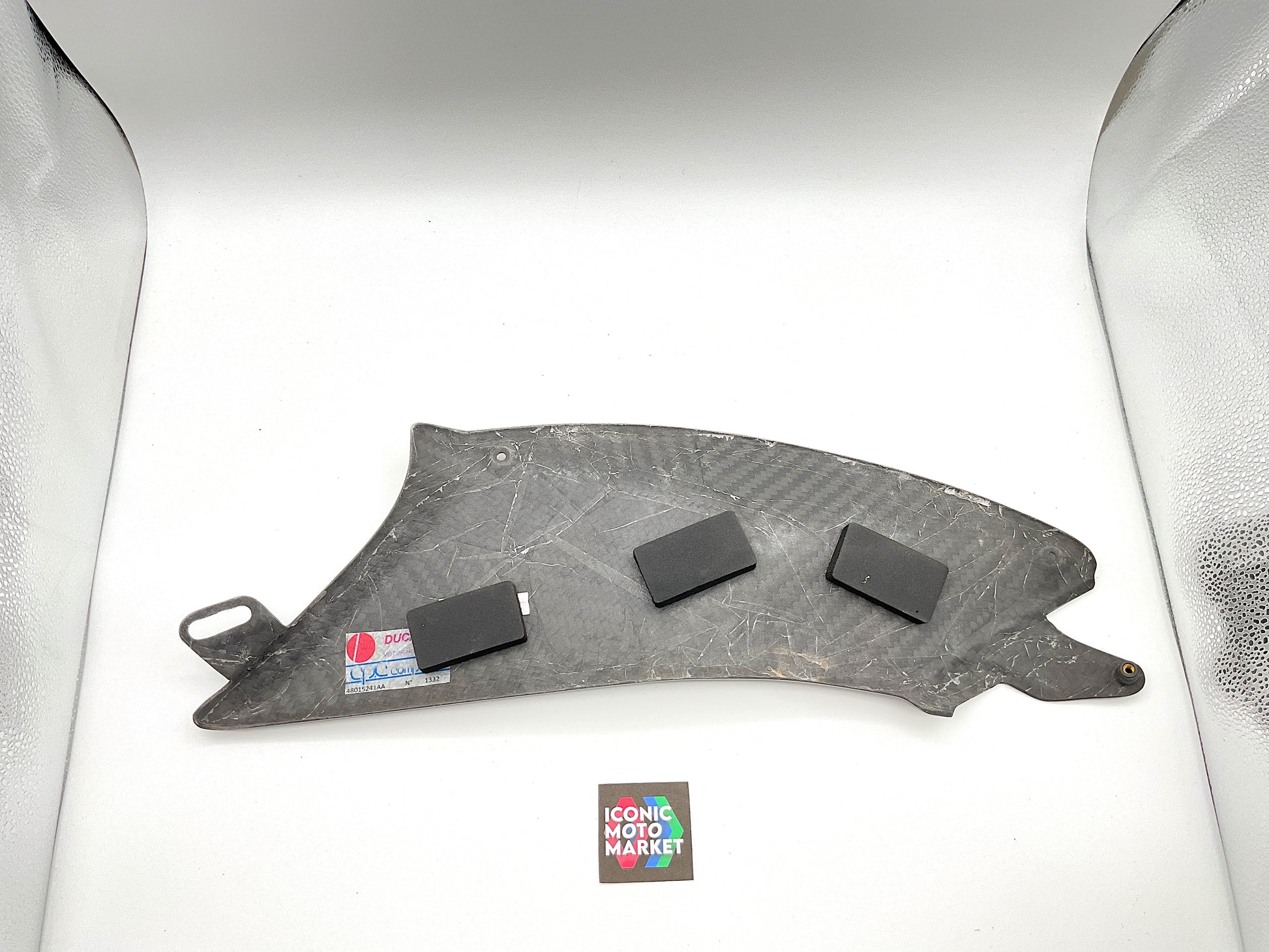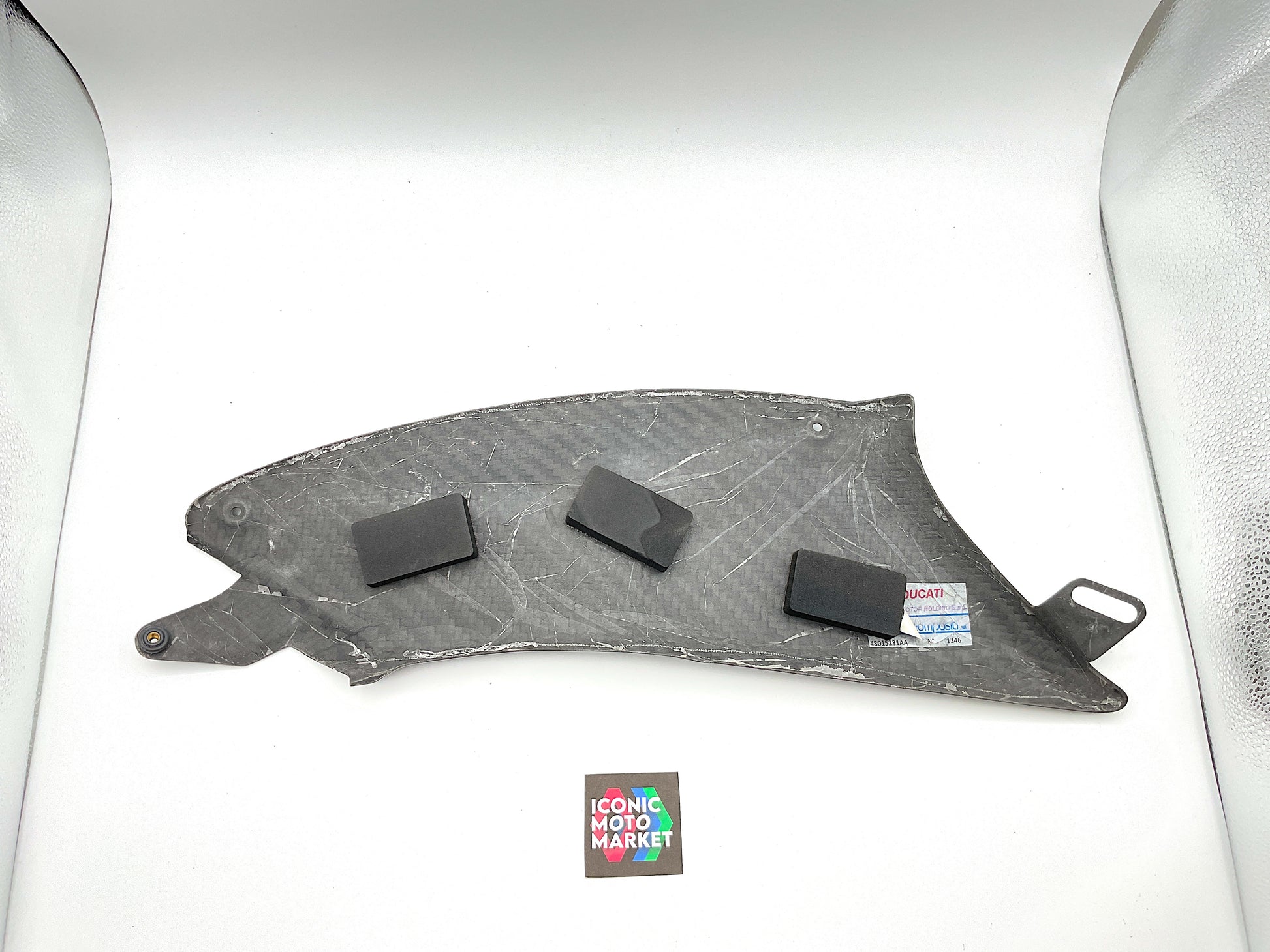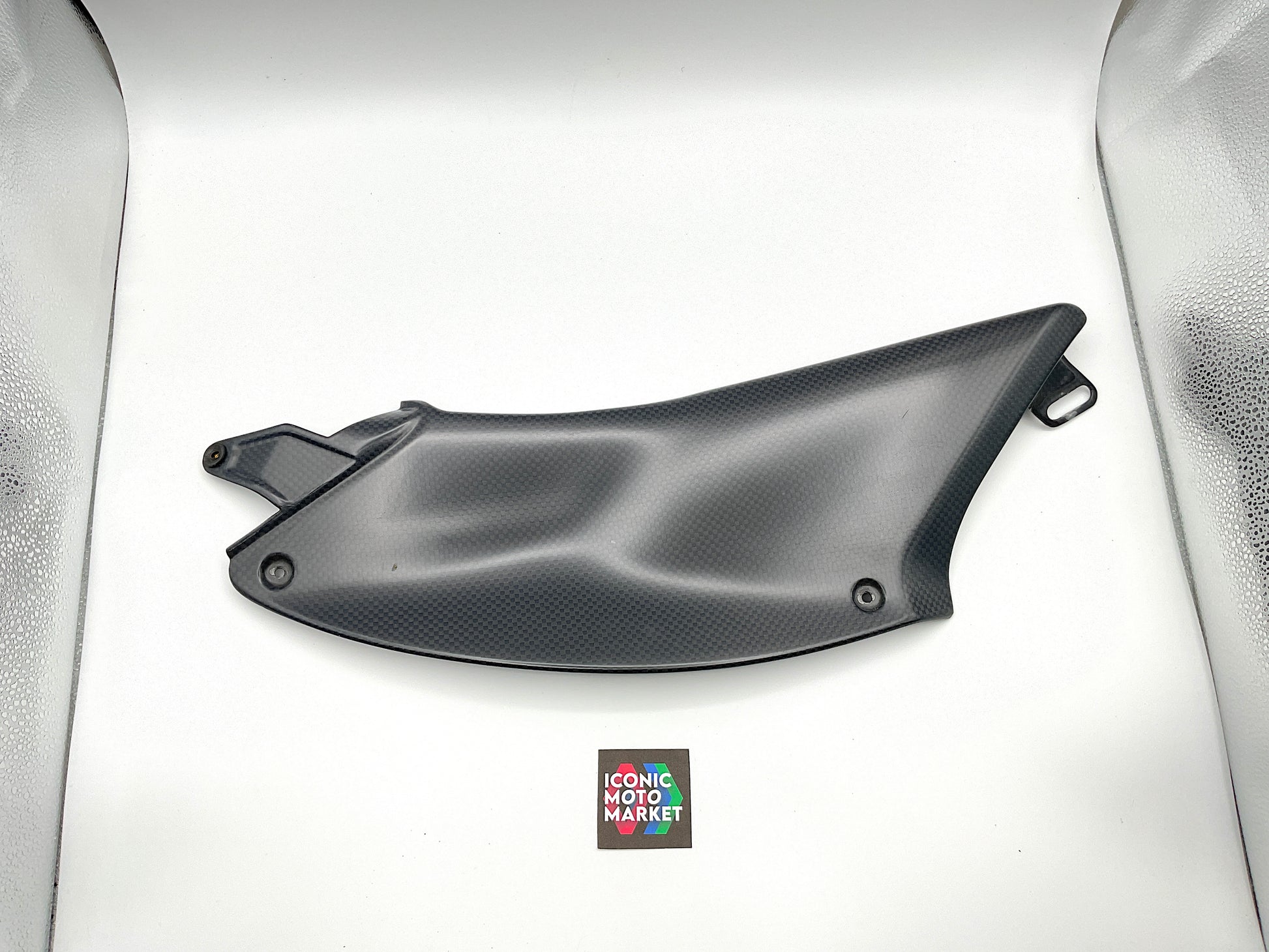 Genuine Ducati, carbon fiber, fuel tank fairing set LH/RH. Pre-owned - fine condition, with one light blemish to right-side fairing. Please refer to the attached images. Sold as-is.