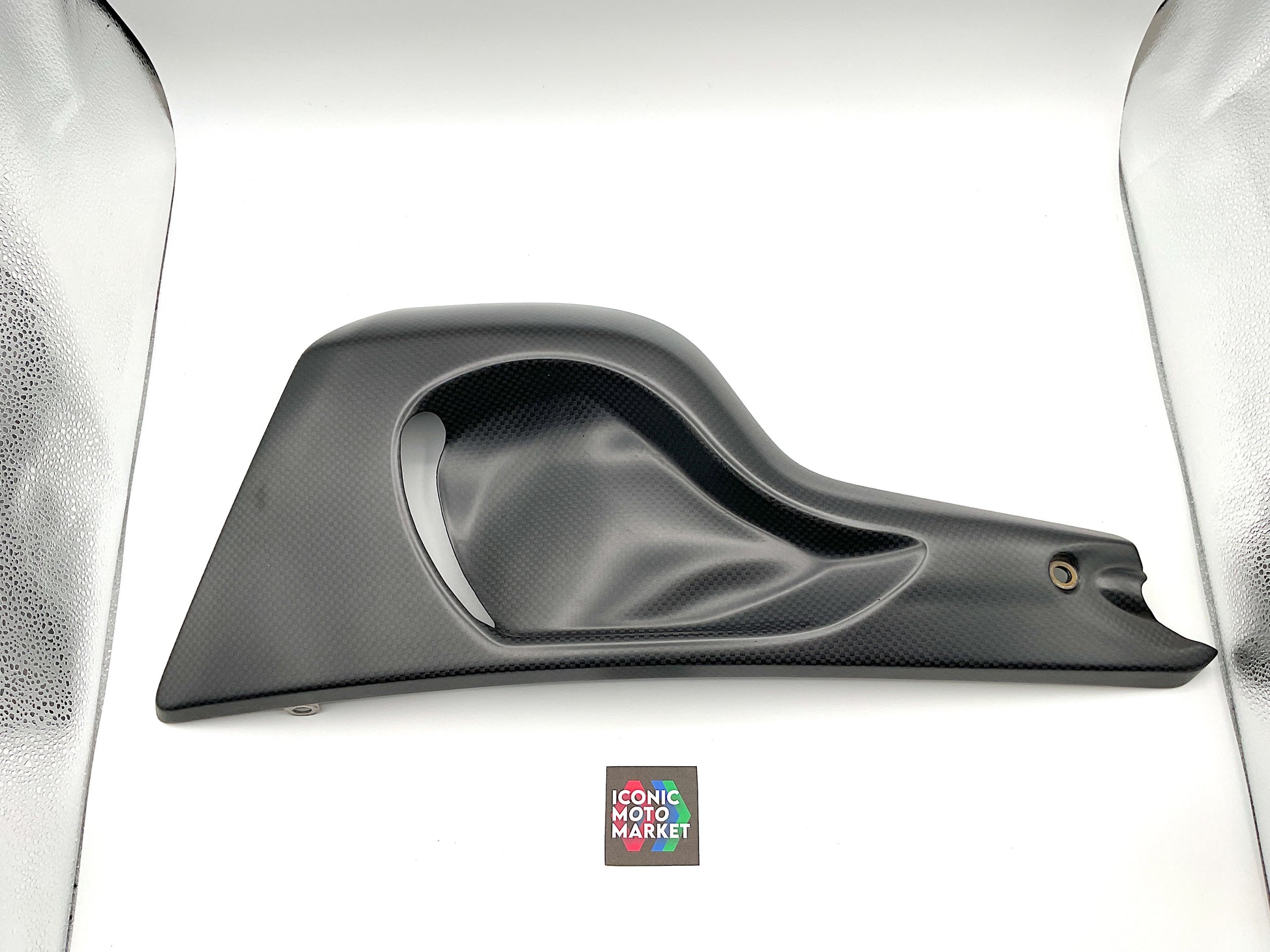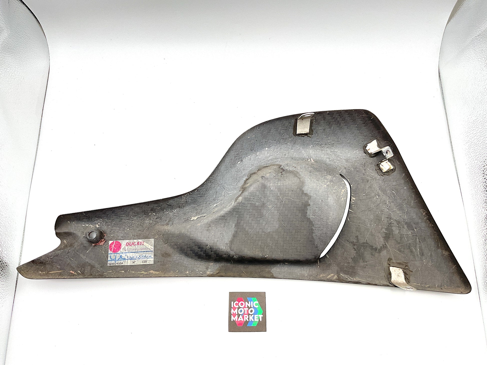 Genuine Ducati, carbon fiber, left-hand belly fairing. Pre-owned - fine condition. Please refer to the attached images. Sold as-is.