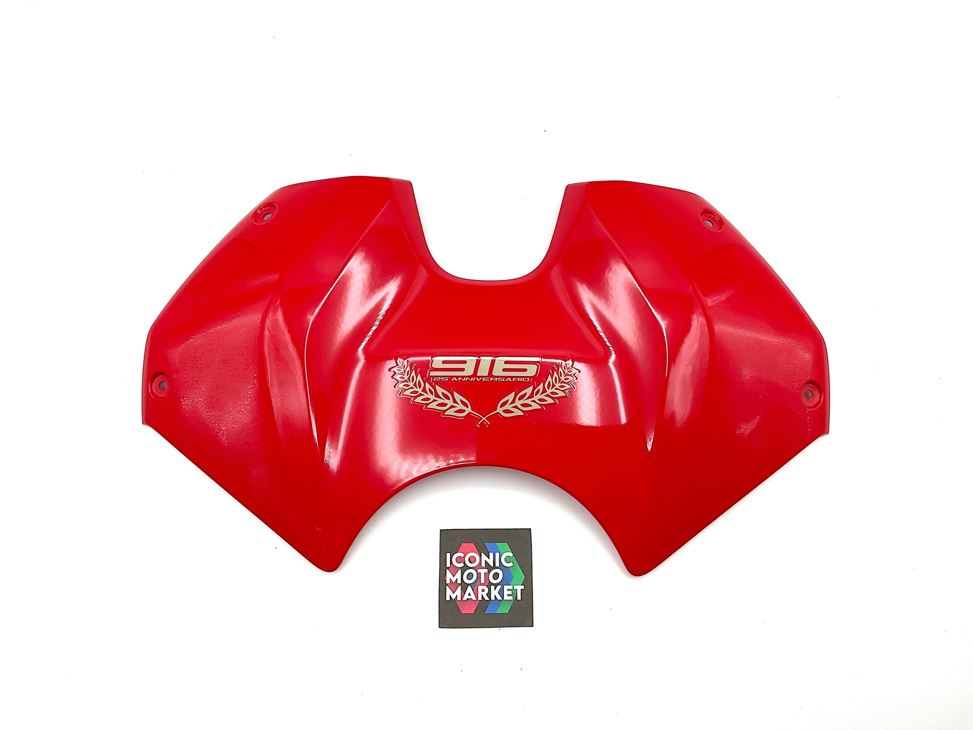 Genuine Ducati OEM tank cover panel, in fine condition. Pre-owned. The '916' decal is to commemorate the 25th anniversary. Sold as-is.