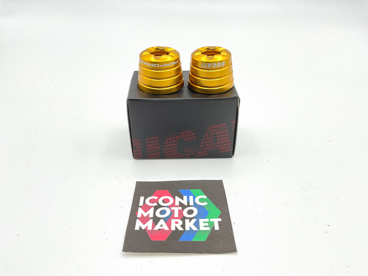 Ducati model #966319AAA - Anodized aluminum bar-ends. New-in-box. (OEM)