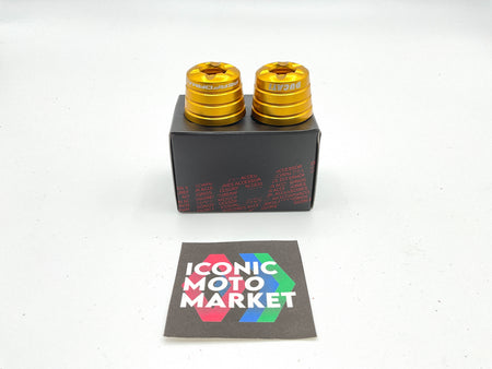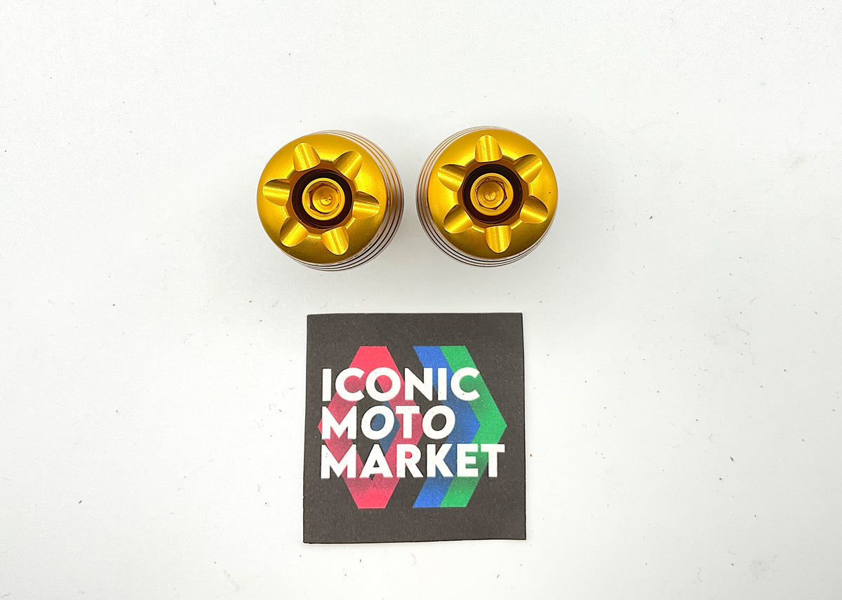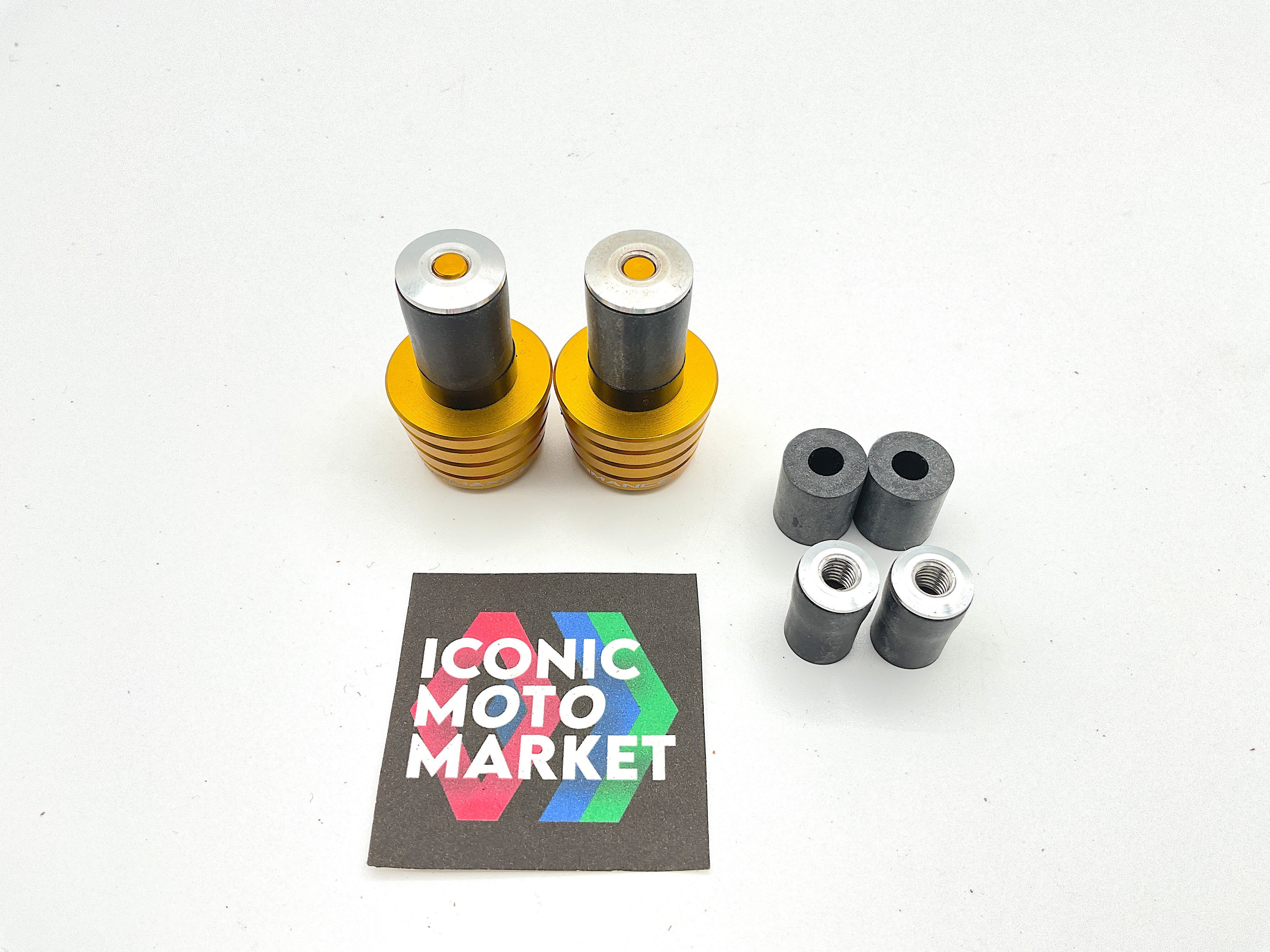 New-in-box, anodized aluminum bar-end kit. This set fits to a wide variety of Ducati models. Removed from package for photographic purposes.
