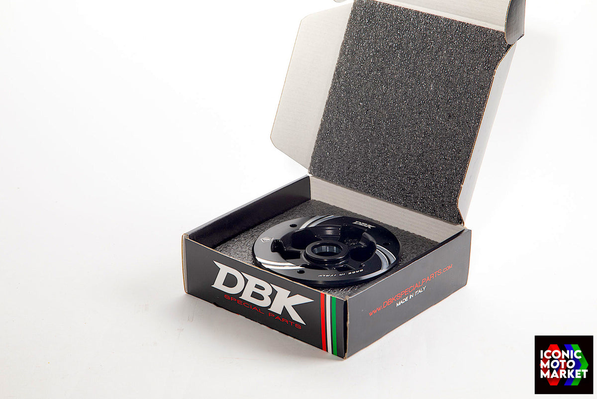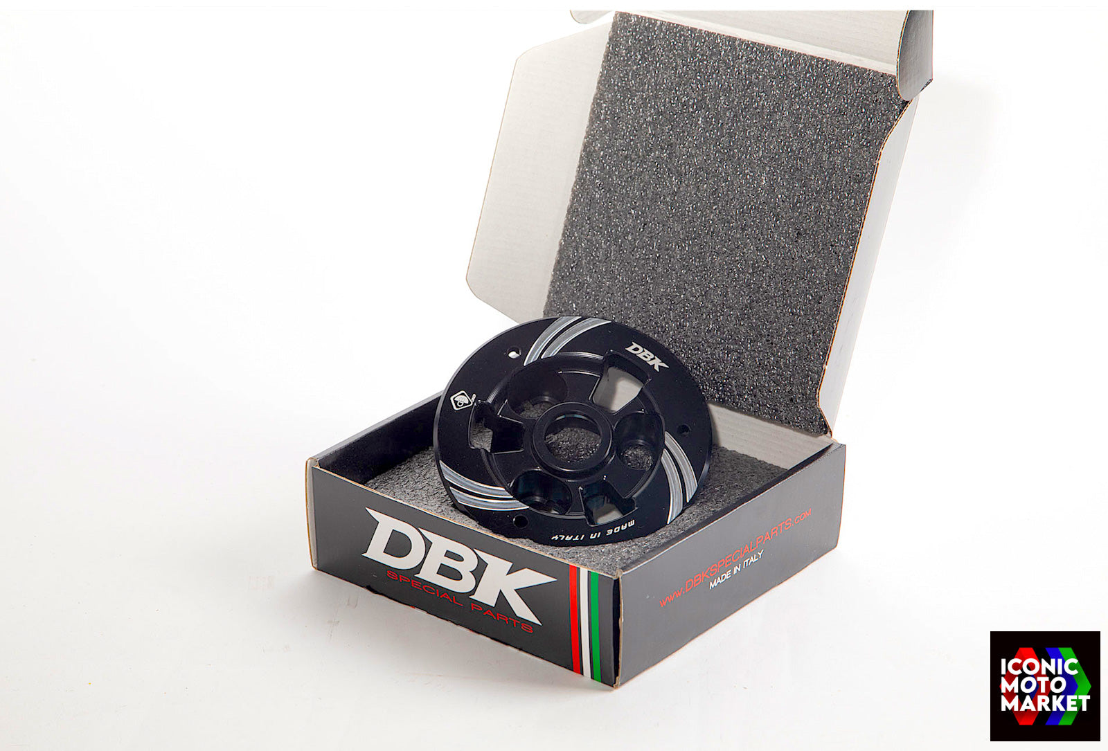 DKB - Made in Italy: V4 Clutch pressure plate. CNC 7075 billet aluminum, black anodized. New-in-box. This item was removed temporarily from original packaging for final inspection and photographic presentation purposes only. Your part will be shipped in the original box. NOTE: There may be light signs of handling and from being in storage. Sold as shown, as-is.