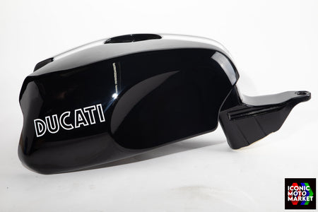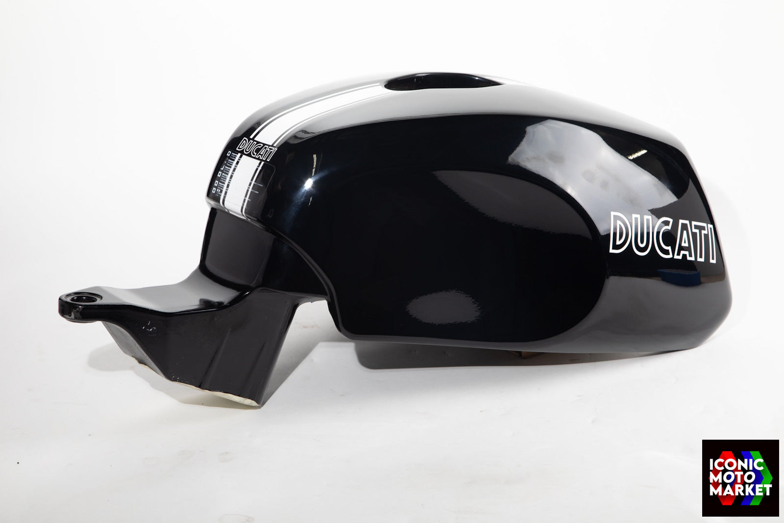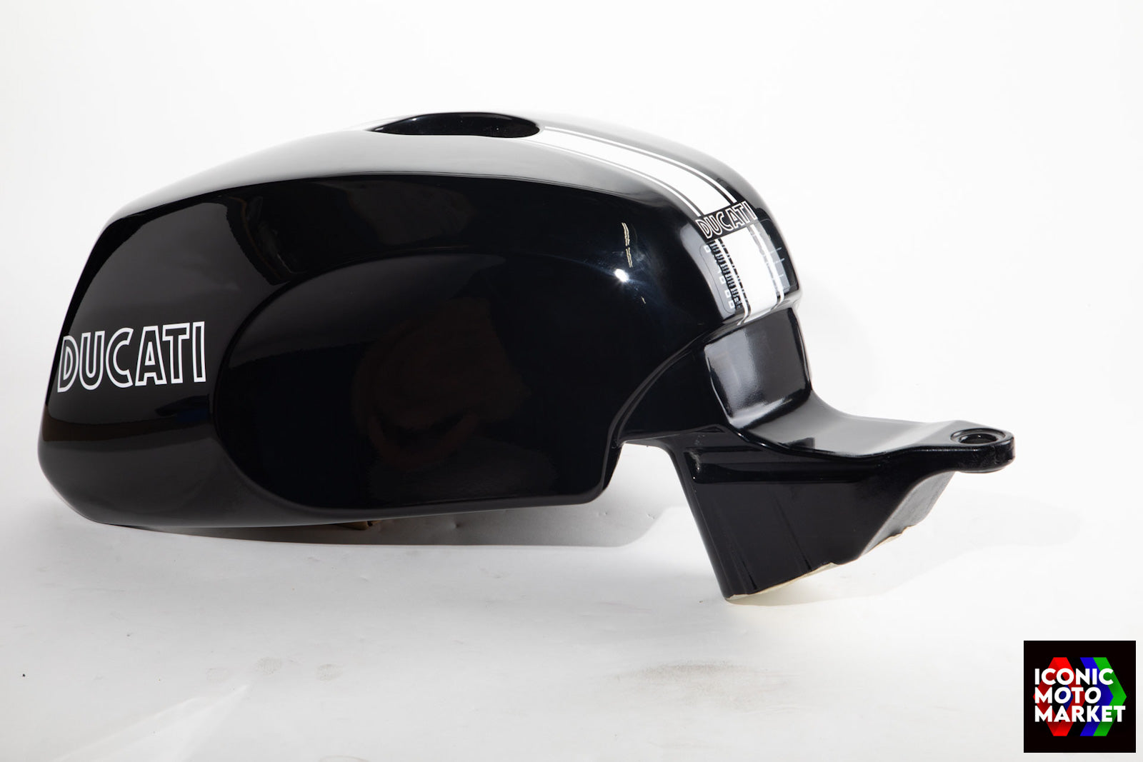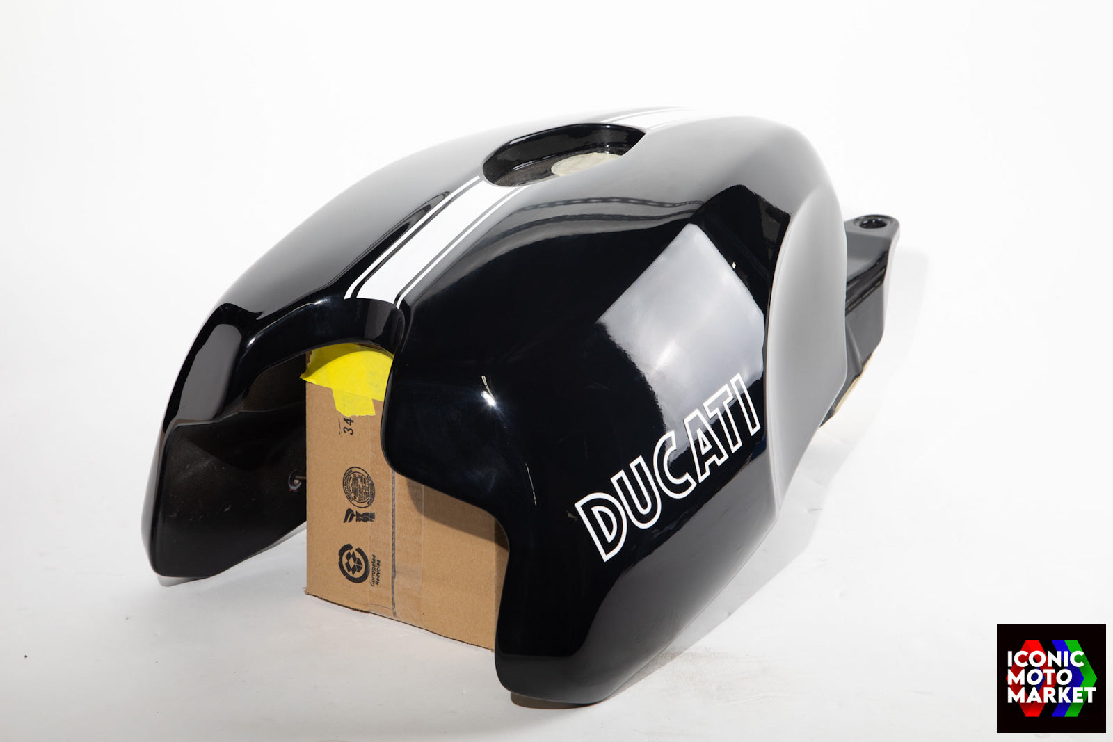 Ducati Genuine Parts: Fuel tank, black. Very good condition, pre-owned, clean, with light wear. Further inspection reveals a single blemish or cosmetic scratch to the right-side underneath the Ducati logo, likely during storage (see pic #8). Sold as shown, as-is.