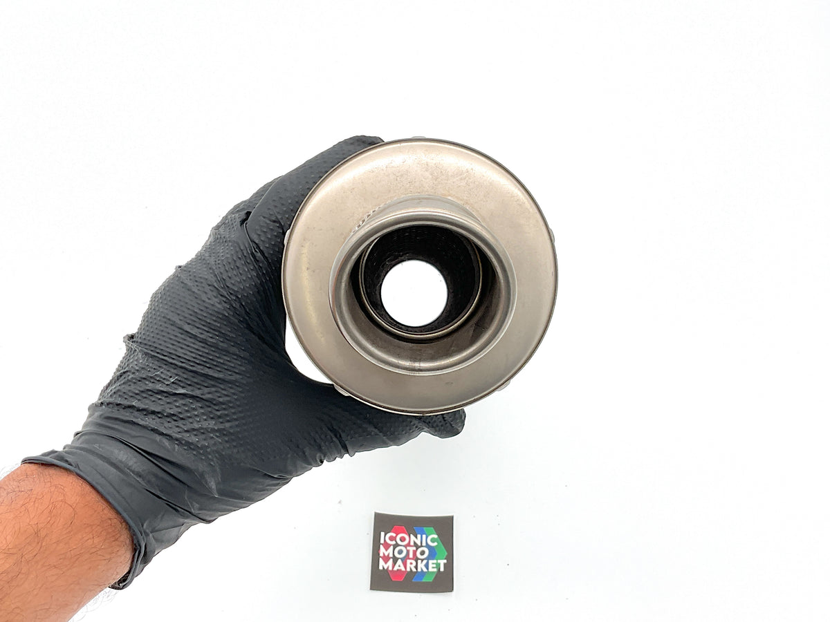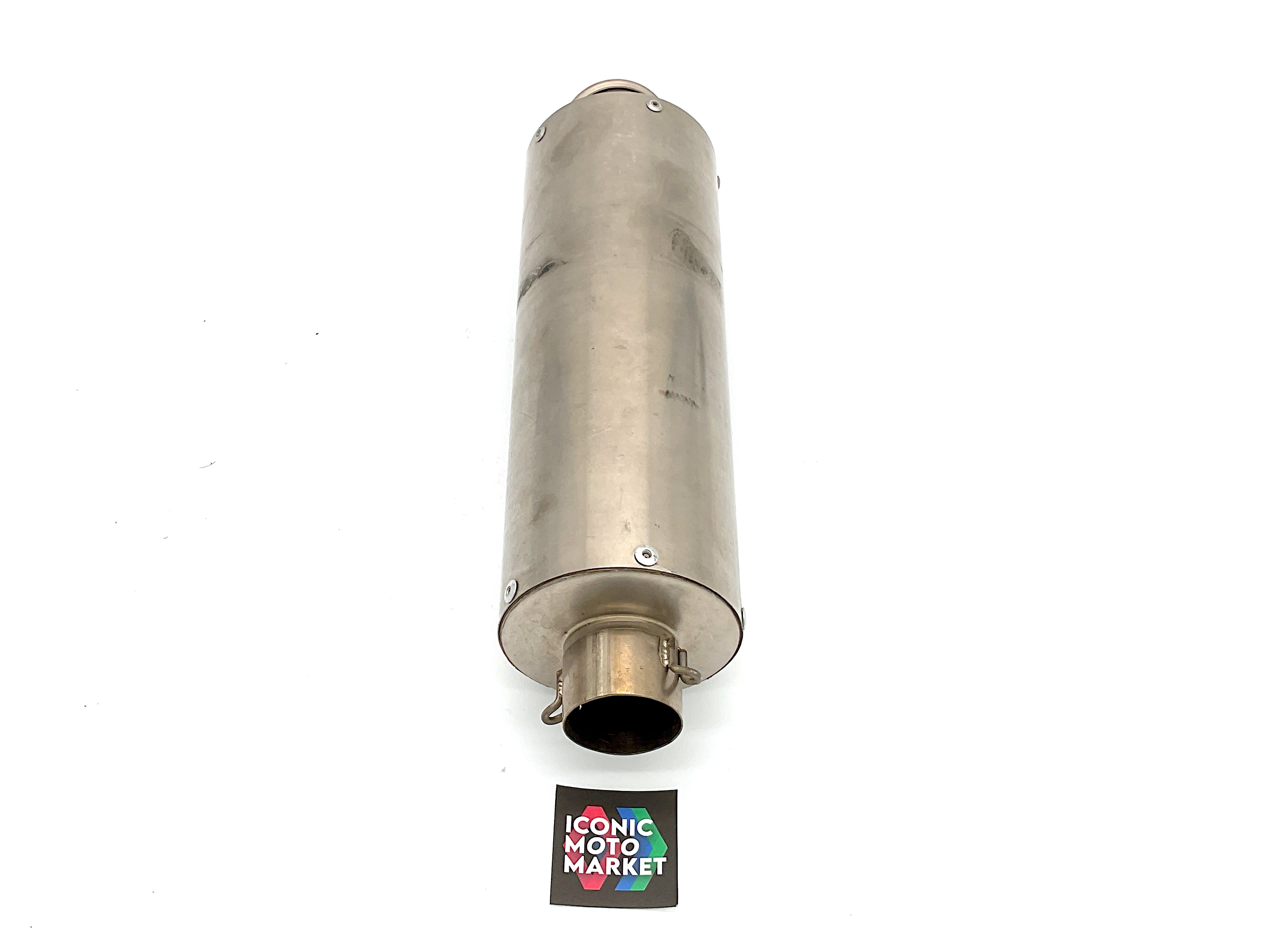 Exhaust silencer/muffler - 11" canister length, with 45mm inlet diameter. Good condition, pre-owned - with wear. Sold as shown. Please consider whether this muffler works with your motorbike exhaust application.