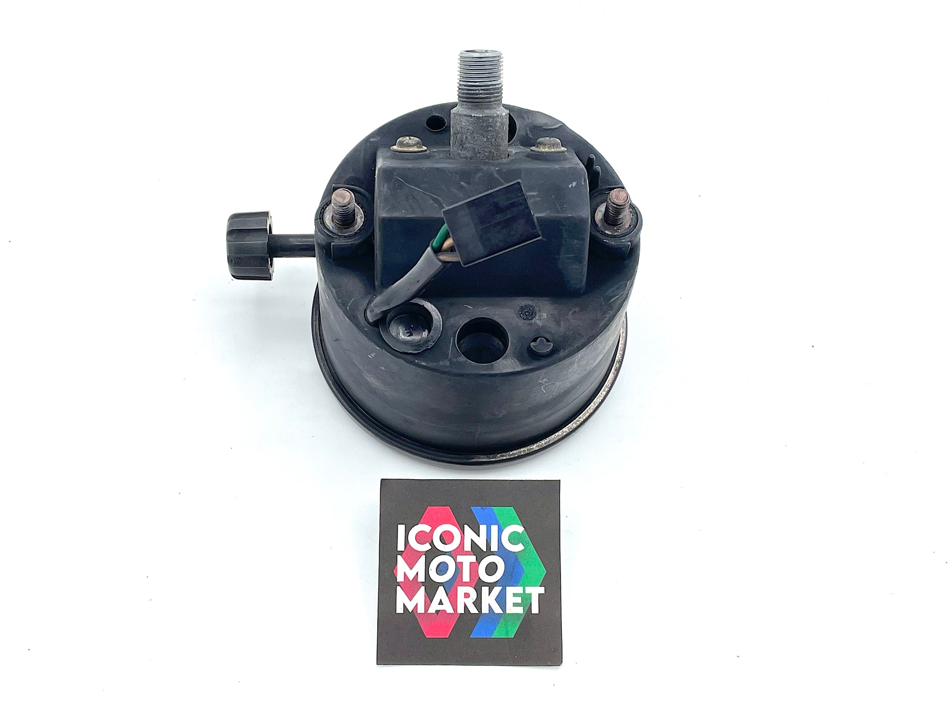 Honda Genuine Parts - Speedometer gauge, in KM/H. Good condition, pre-owned, with light wear. As it was quite typical, the NS250R needle(s) did have a habit of being somewhat brittle over time, and this gauge is an example of just that (see pic #3). Looking past this minor blemish, the cosmetics of the unit are quite good - with no apparent fading, and the needle should be restored to proper working order. Sold complete as shown, as-is.