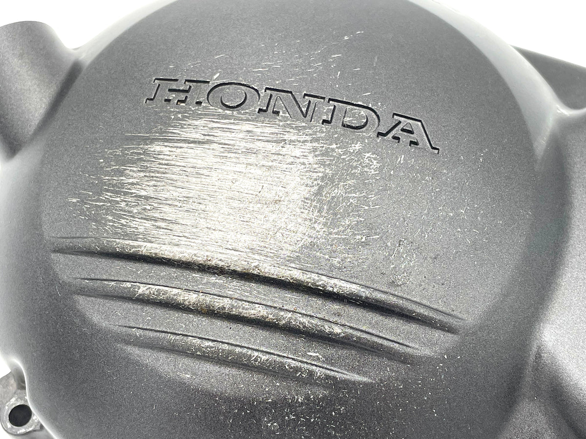 Honda Genuine Parts - Crankcase cover, right-side. Good condition, pre-owned, with scratches to outer cover (see pics). The marks are quite superficial and should clean up nicely with some attention to detailing. Sold as shown, as-is.