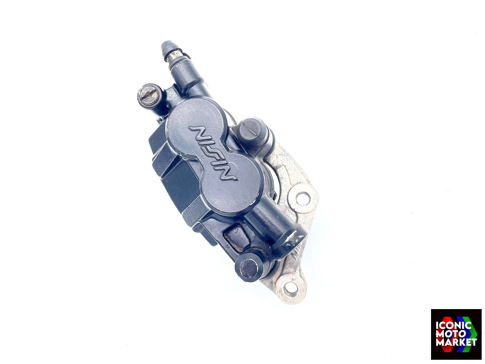 Honda Genuine Parts: Rear brake caliper assembly. Good condition, pre-owned, with regular wear. Further inspection of this item reveals a few area where the paint has lightly worn from use. The mount bracket could use some cleaning. The recommendation would be to service this caliper before installing on a motorcycle. This part has not been tested, and is sold as shown, as-is.