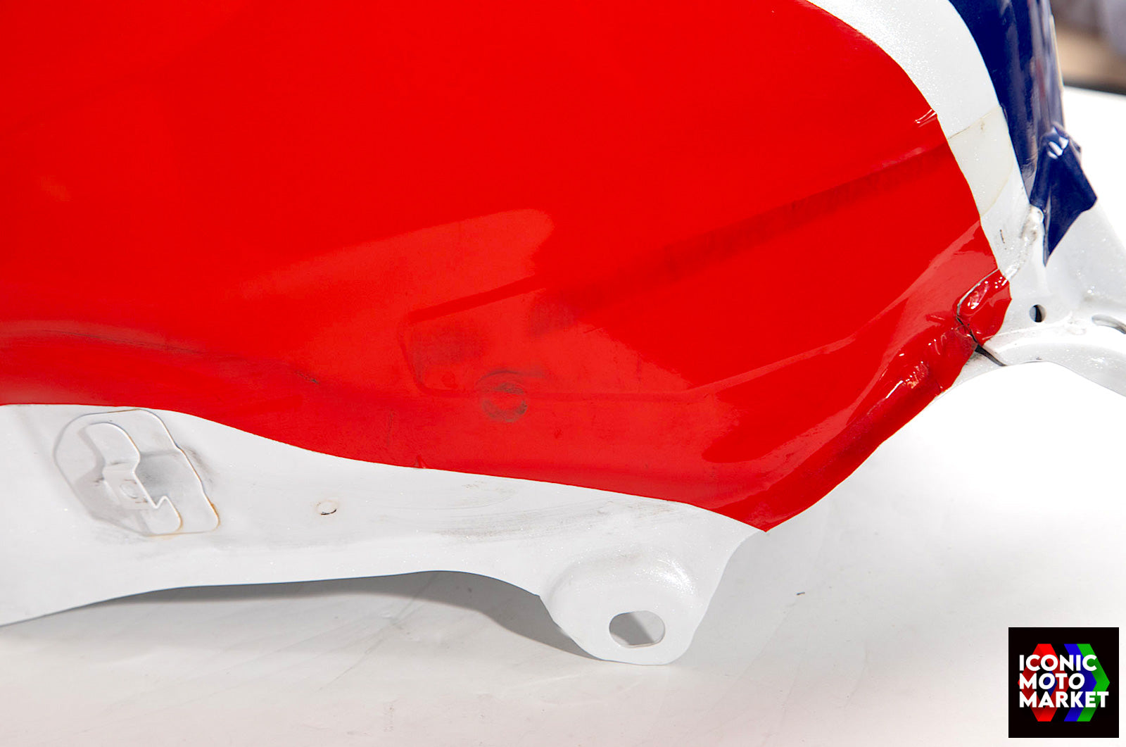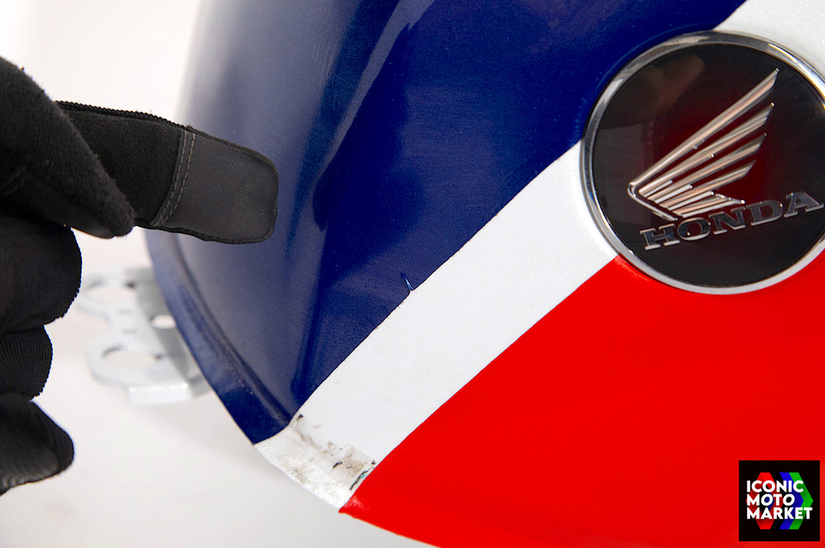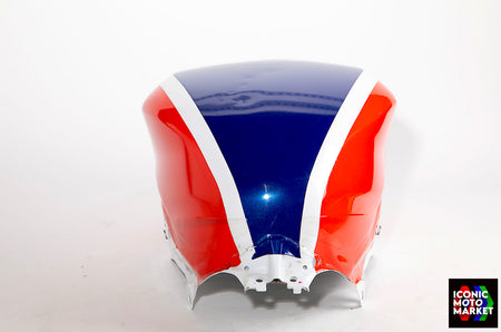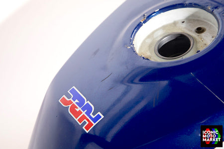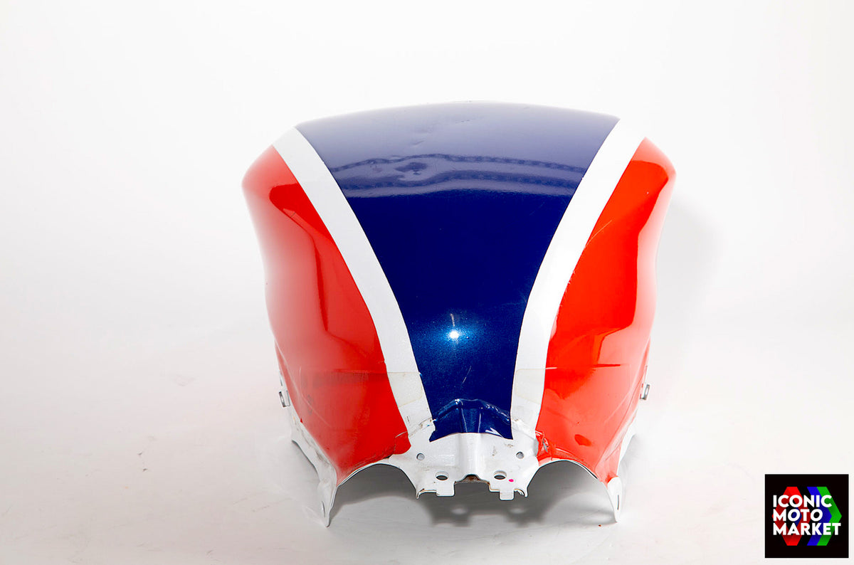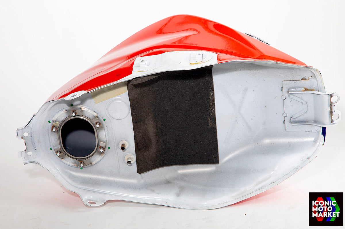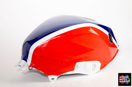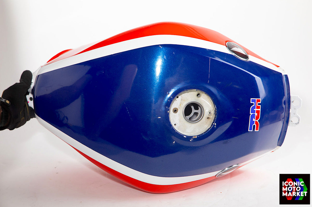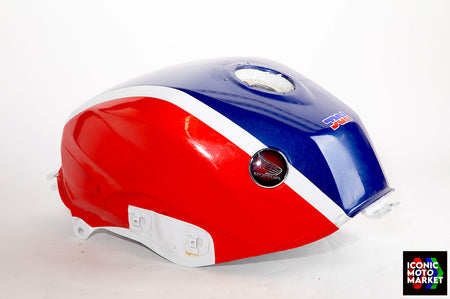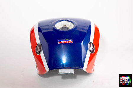 Honda Genuine Parts: Fuel tank, red/blue/white. Good condition, pre-owned. Further inspection reveals cosmetic blemishes with some paint flaking (see pics #9-20). Sold as shown, as-is.