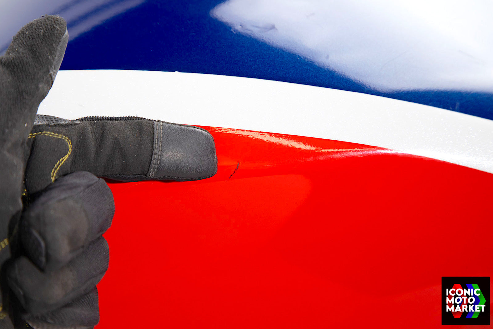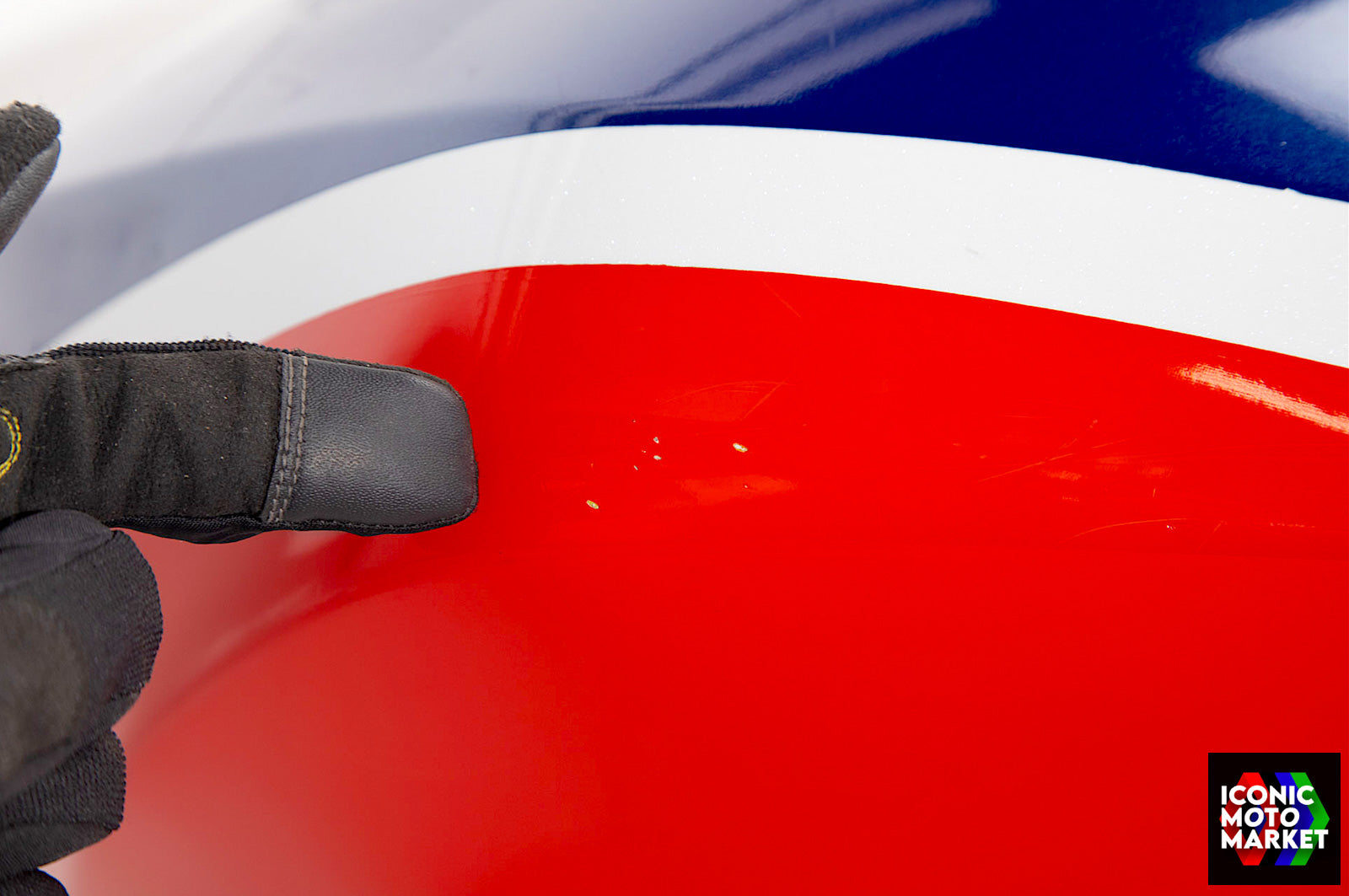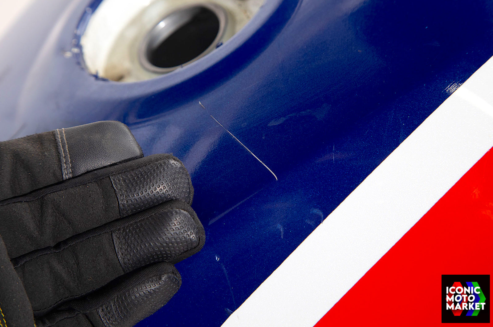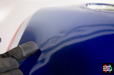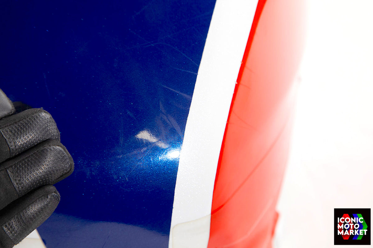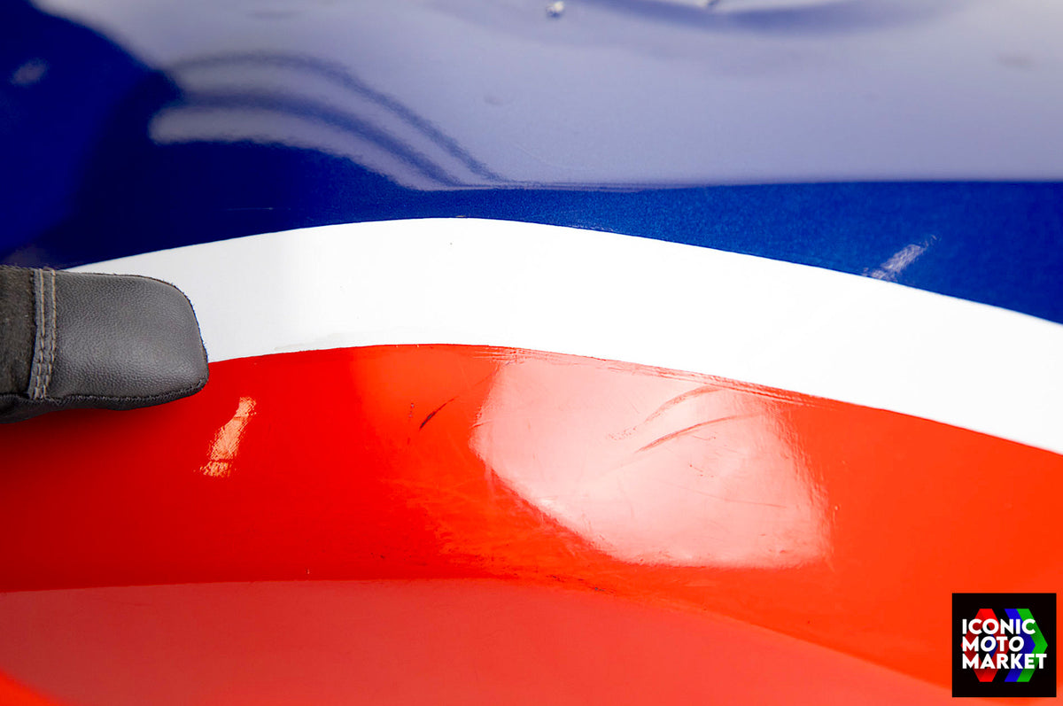 Honda Genuine Parts: Fuel tank, red/blue/white. Good condition, pre-owned. Further inspection reveals cosmetic blemishes with some paint flaking (see pics #9-20). Sold as shown, as-is.