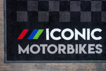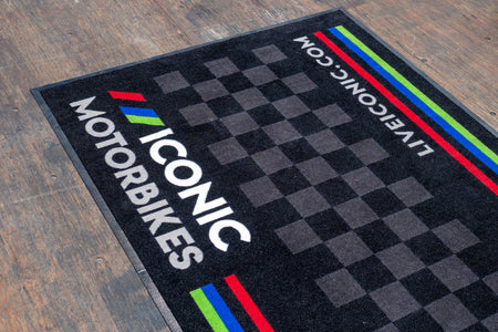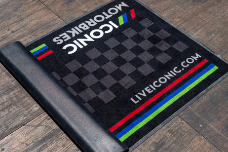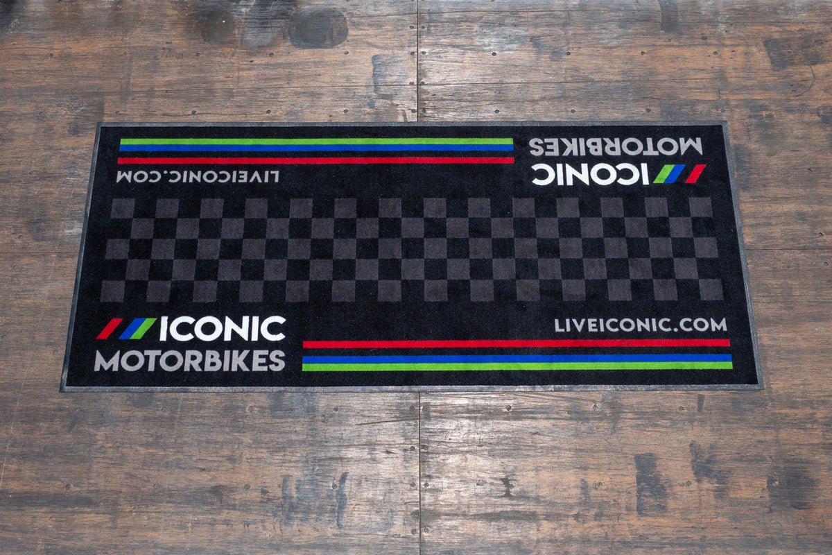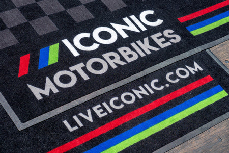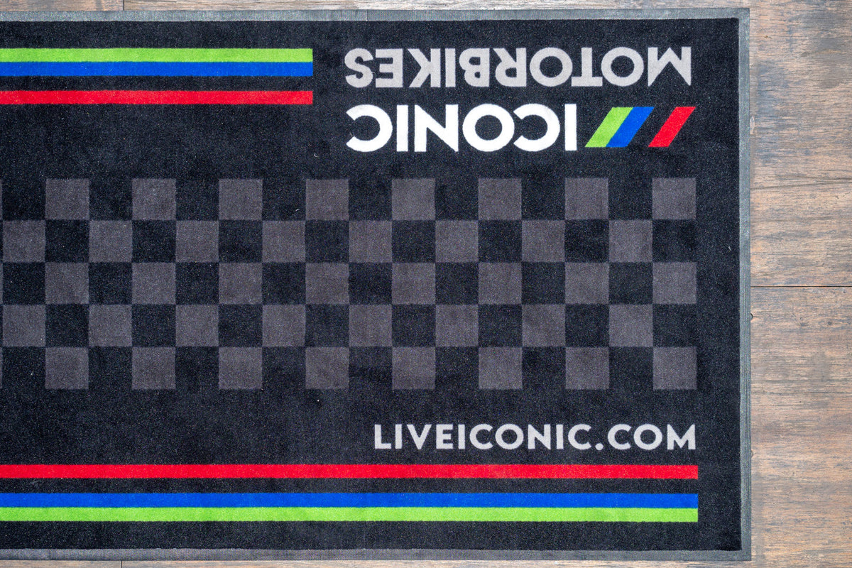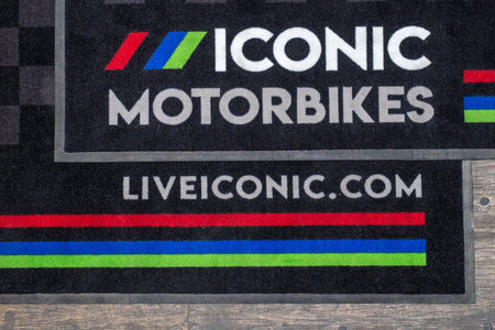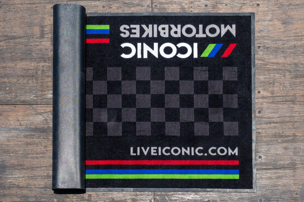 Introducing Iconic Motorbikes Bike Mats! These mats are beautifully designed and durable enough to stand up to daily use. Add a bit of Iconic style to your garage! Go ahead, grab one - your Iconic bike deserves it!