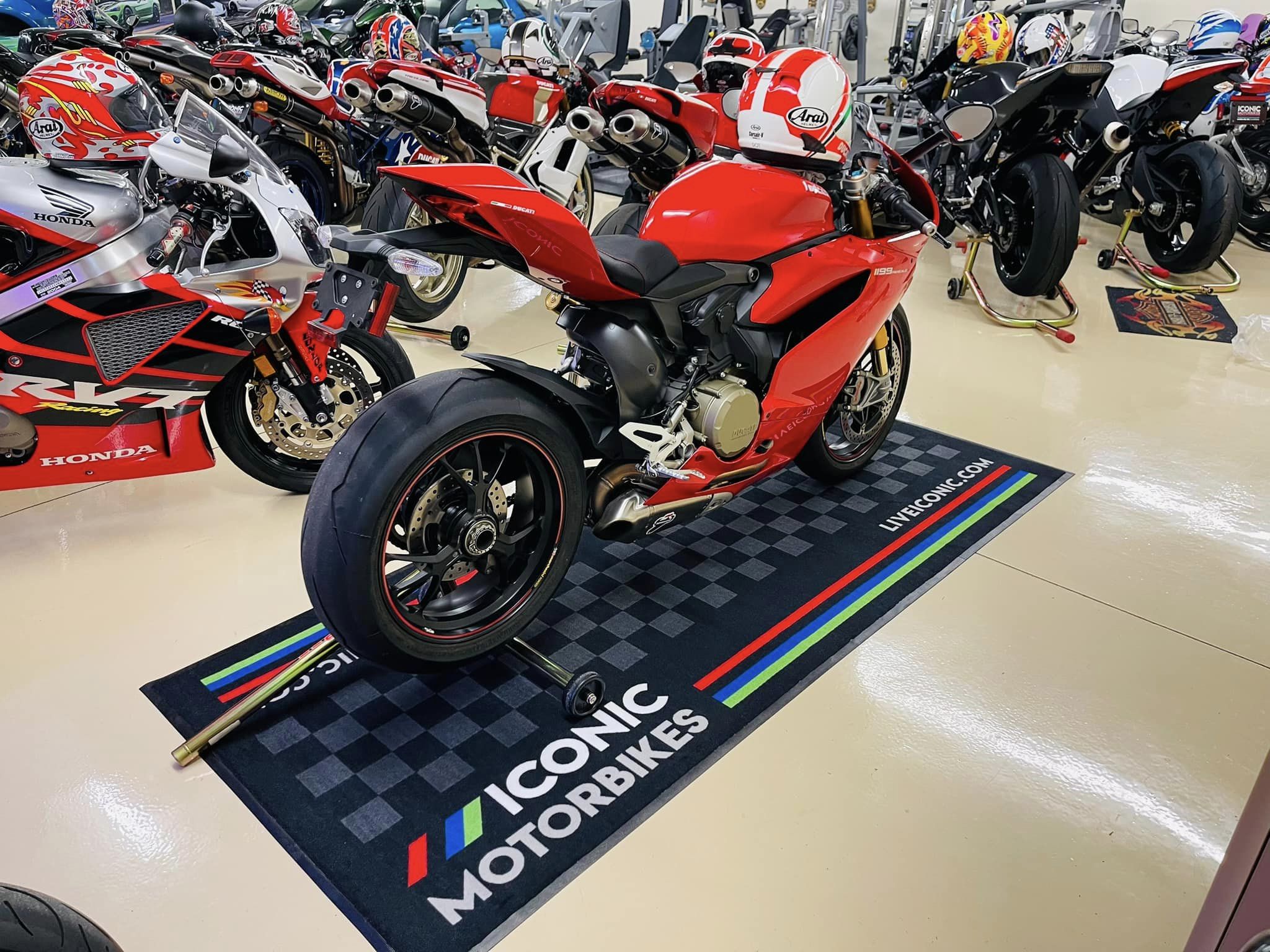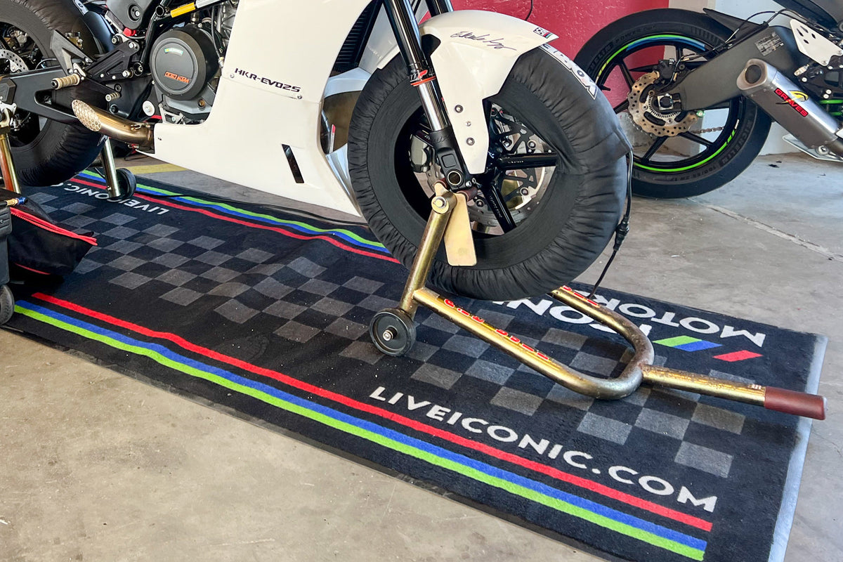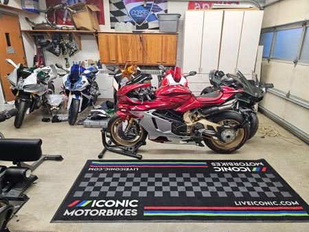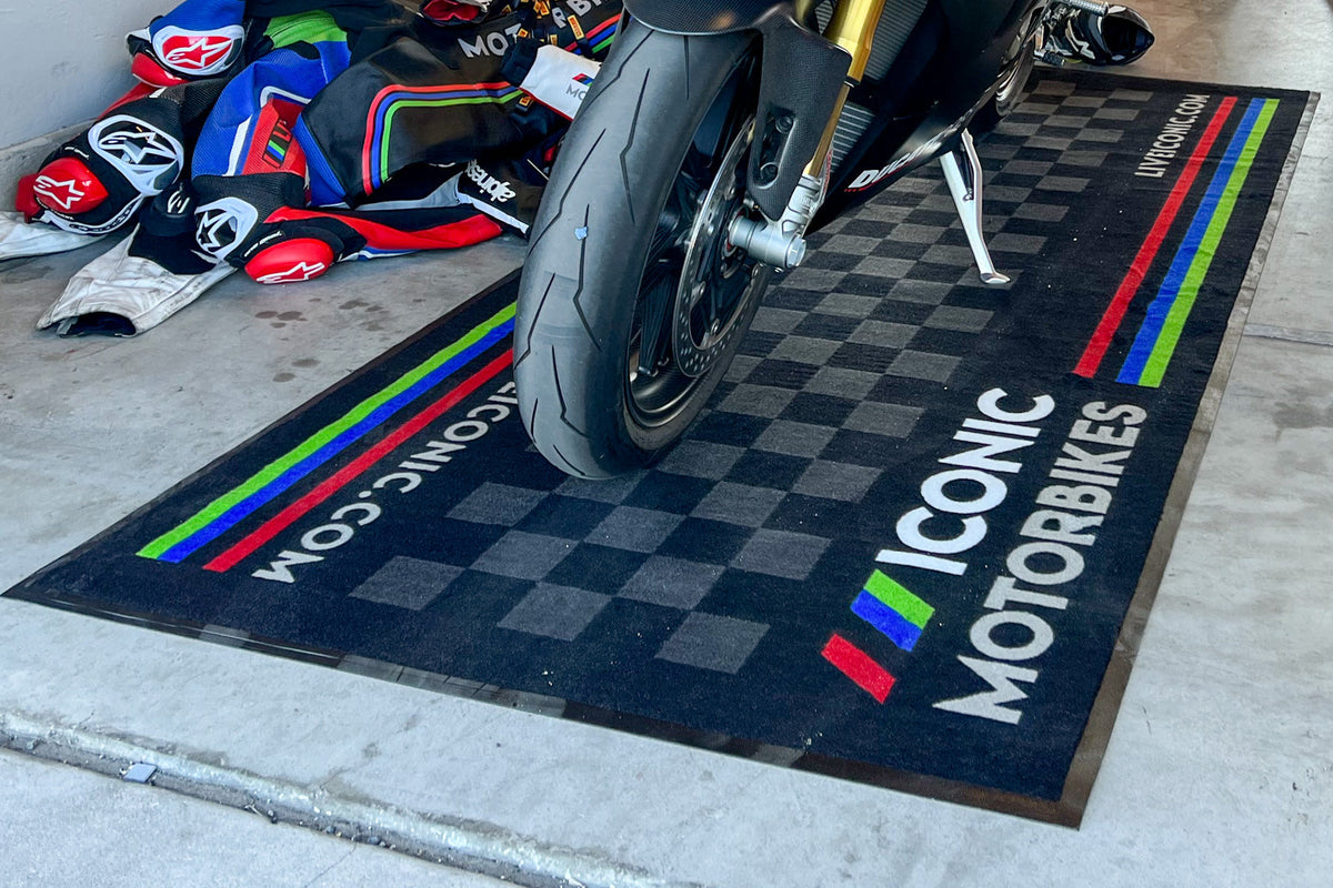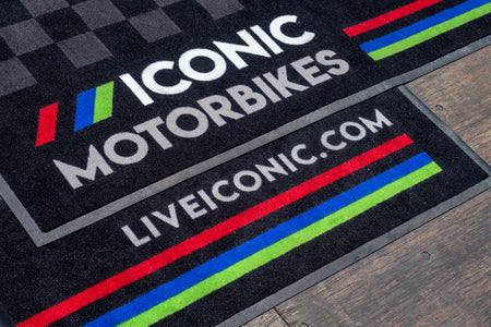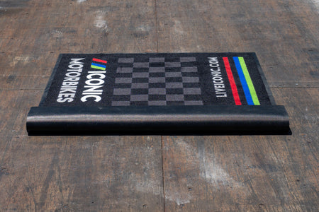 Introducing Iconic Motorbikes Bike Mats! These mats are beautifully designed and durable enough to stand up to daily use. Add a bit of Iconic style to your garage! Go ahead, grab one - your Iconic bike deserves it!