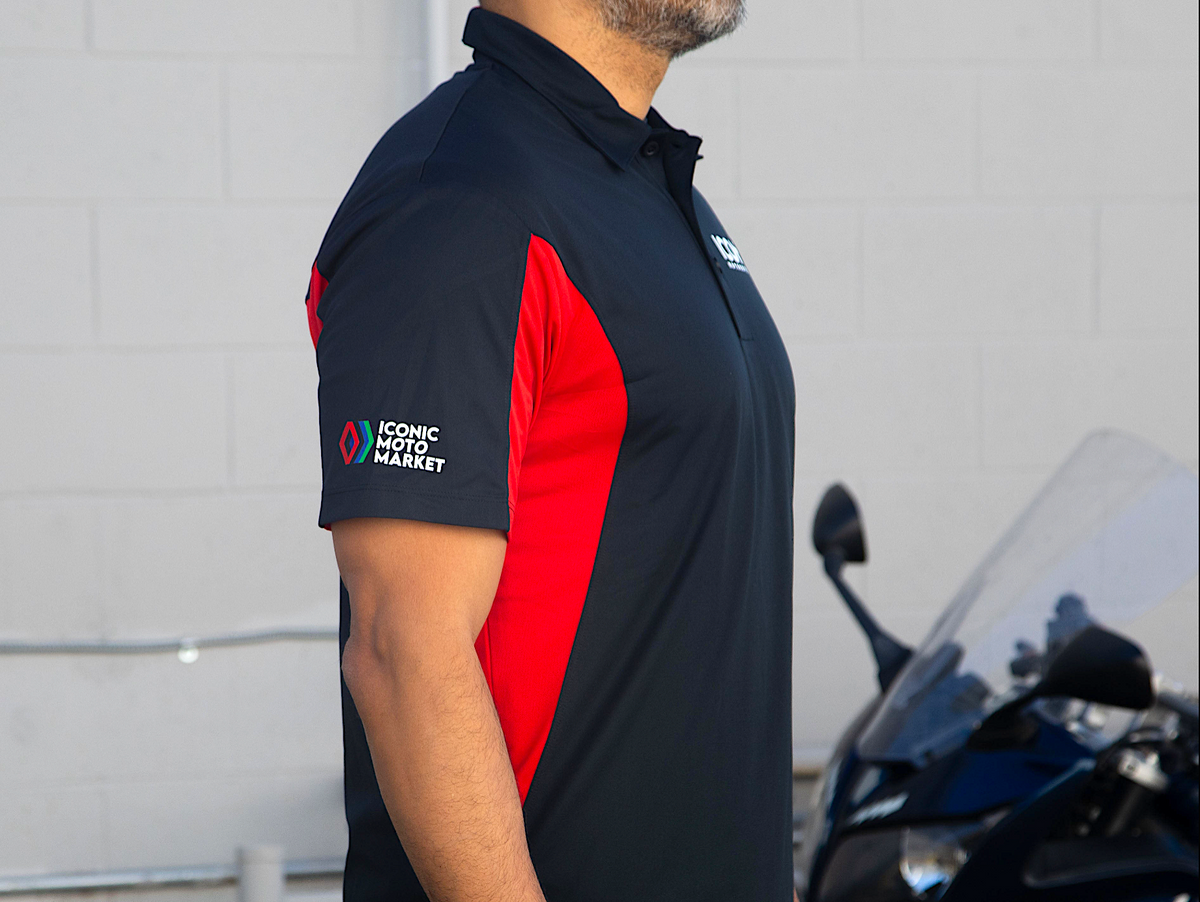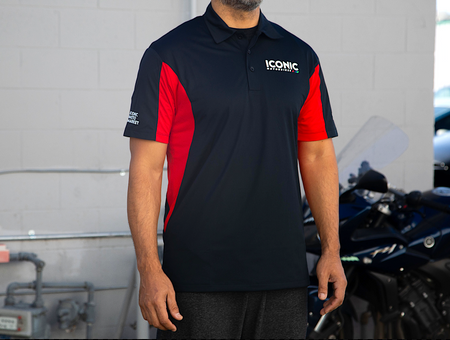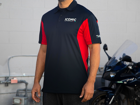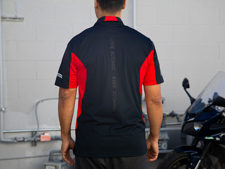 Available now in select quantities, and offered in classic red & black racing colors, these sharp polos proudly adorn each of our team crests at Iconic Motorbikes.