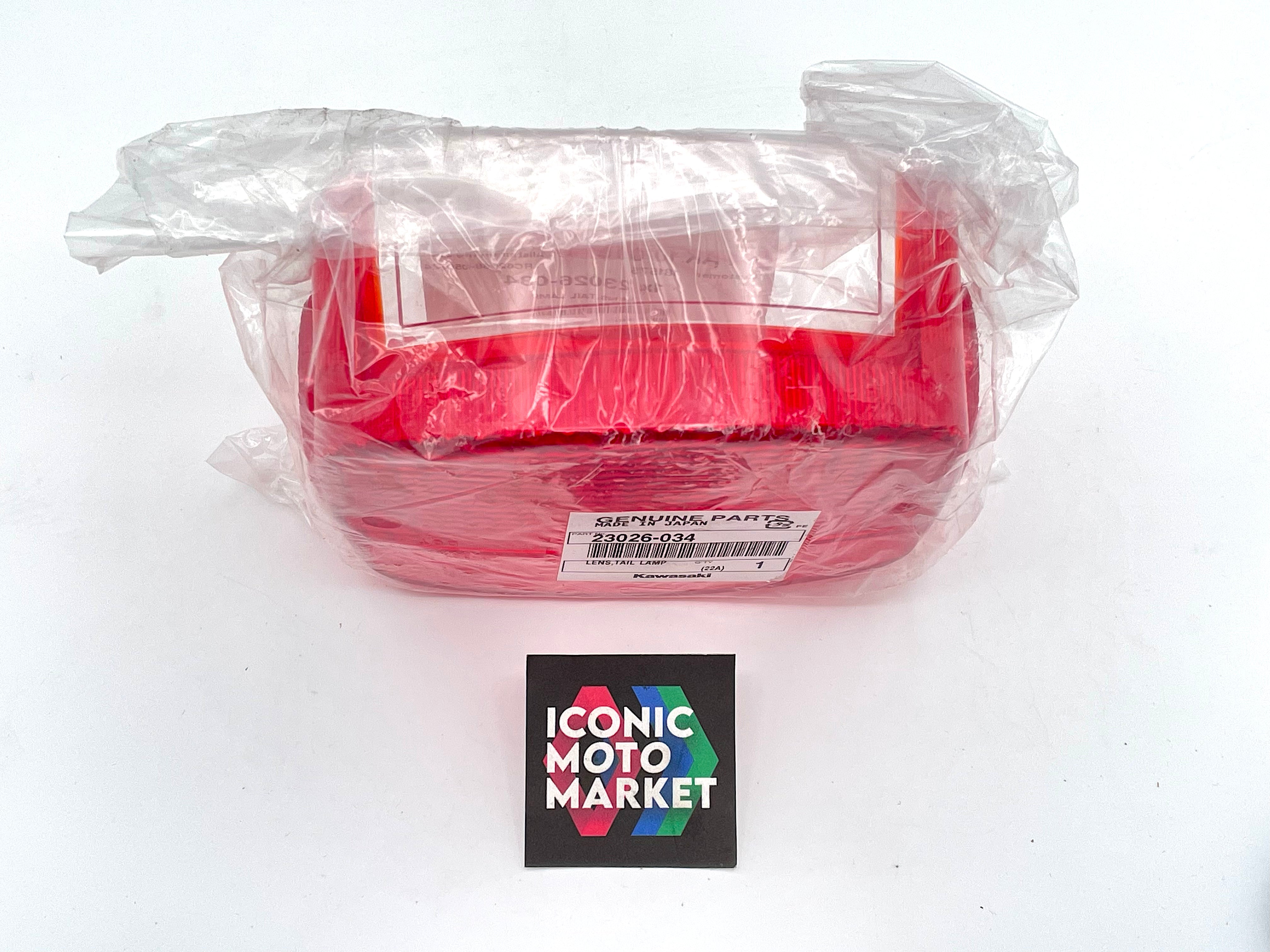 Kawasaki Genuine Parts - Rear tail-light lens. New-in-package - NOS. Sold as shown.