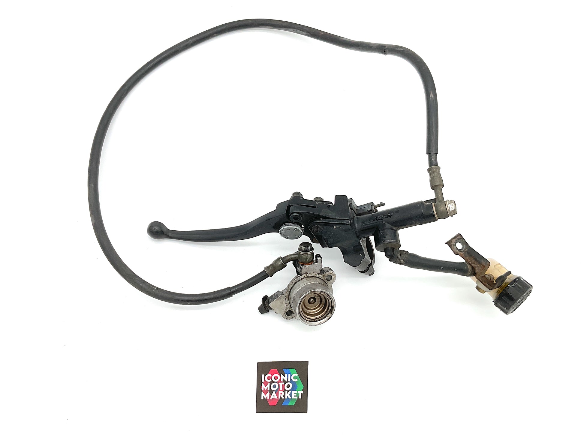 Kawasaki Genuine Parts - Clutch master cylinder assembly, with clutch lever and accompanying fluid reservoir. Good condition, pre-owned, with light wear. NOTE: This component should be reviewed for any fluid change requirements and correct operation before installing onto a motorbike. Sold complete as shown, as-is.