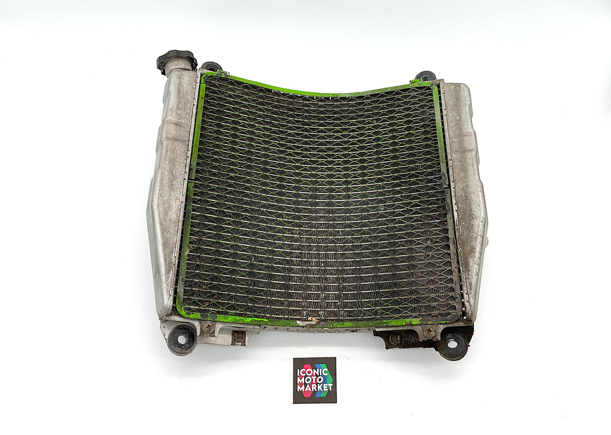 Kawasaki Genuine Parts - Radiator, with fan. Includes radiator screen (see pic #1). Good condition. Pre-owned, with wear. One port appears to have required repair and gold braising (see left-side in pic #2). Sold as shown, as-is.