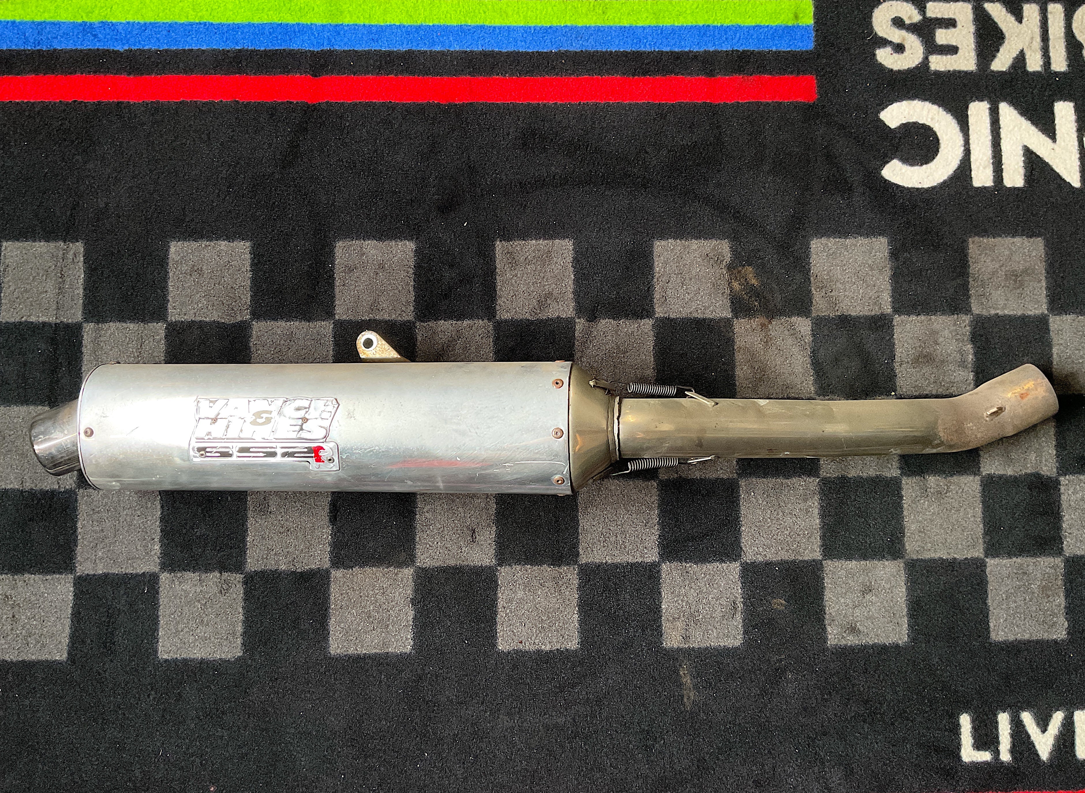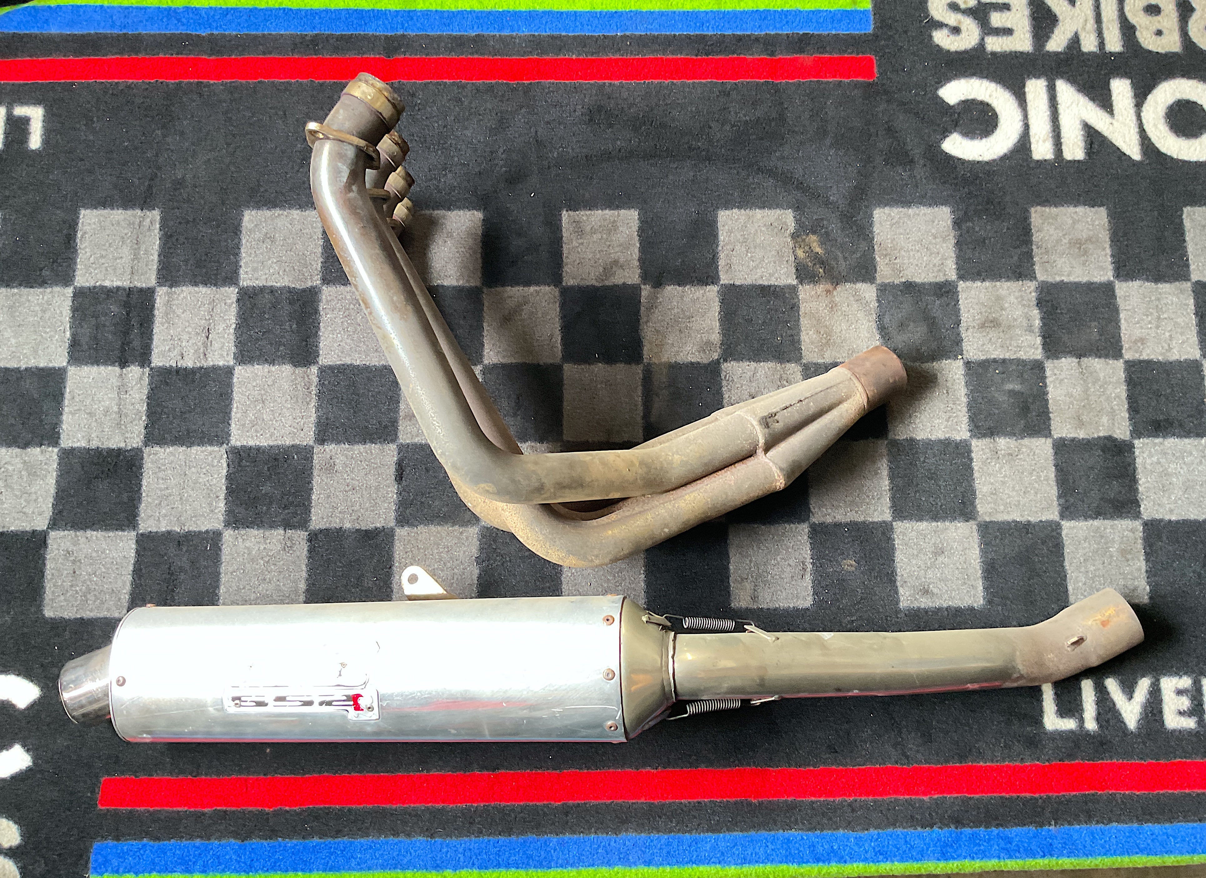Vance & Hines Quality Product - Full exhaust system, removed from a 1992 model Ninja ZX-7. Good condition. Pre-owned, with wear, some surface corrosion and scratches from use. Could be cleaned up nicely. Solid choice for an upgrade from stock. Sold complete as shown, as-is.