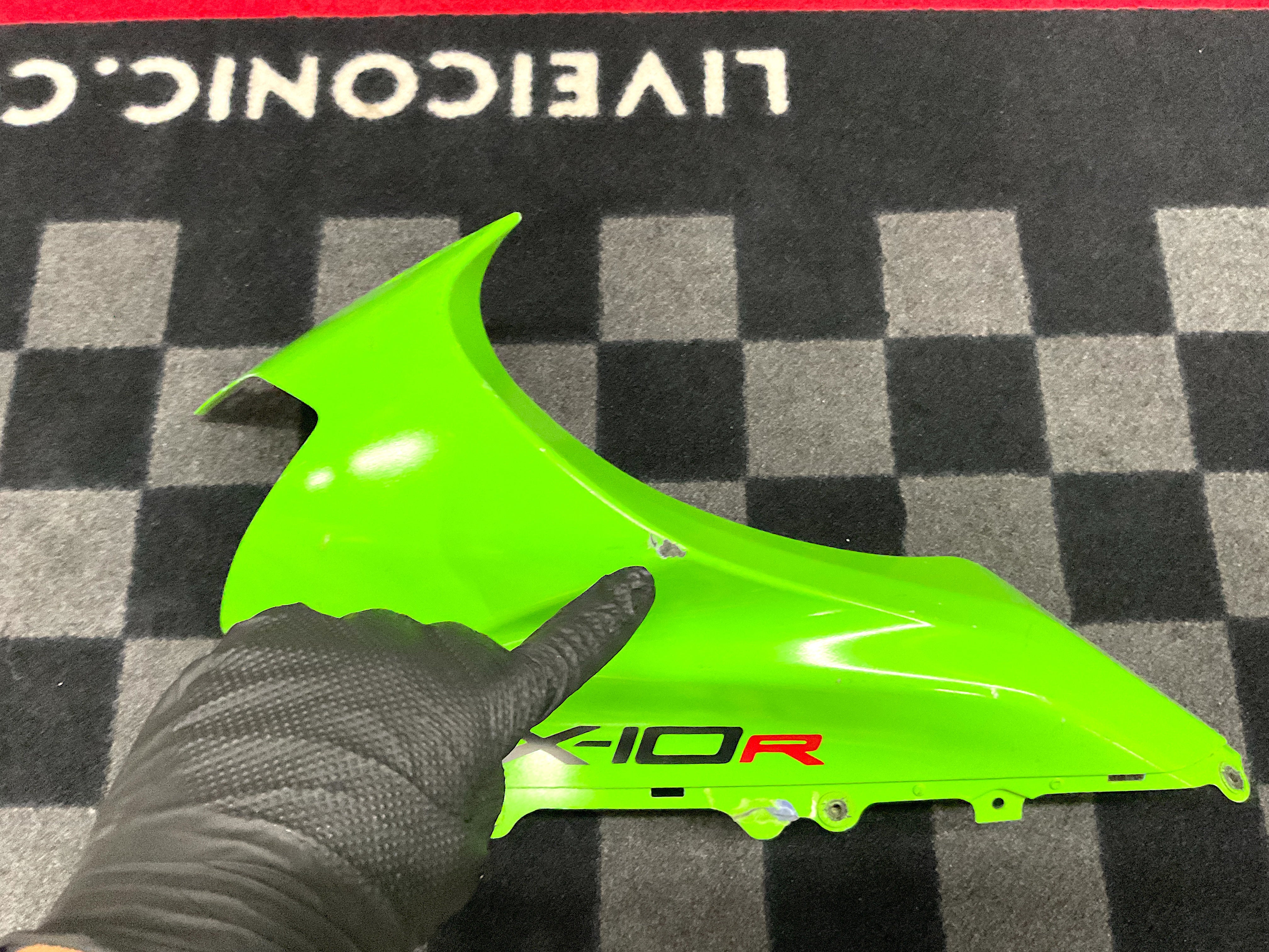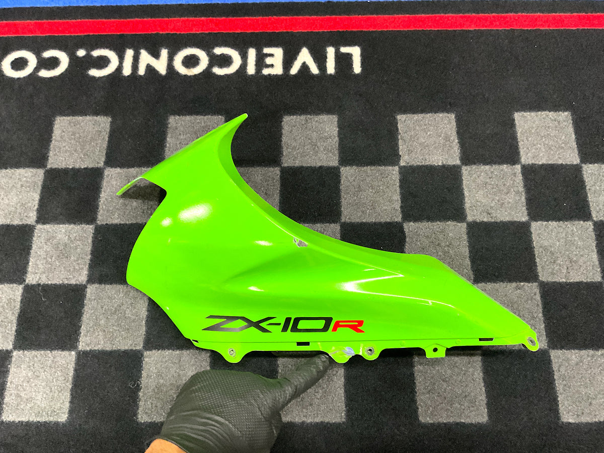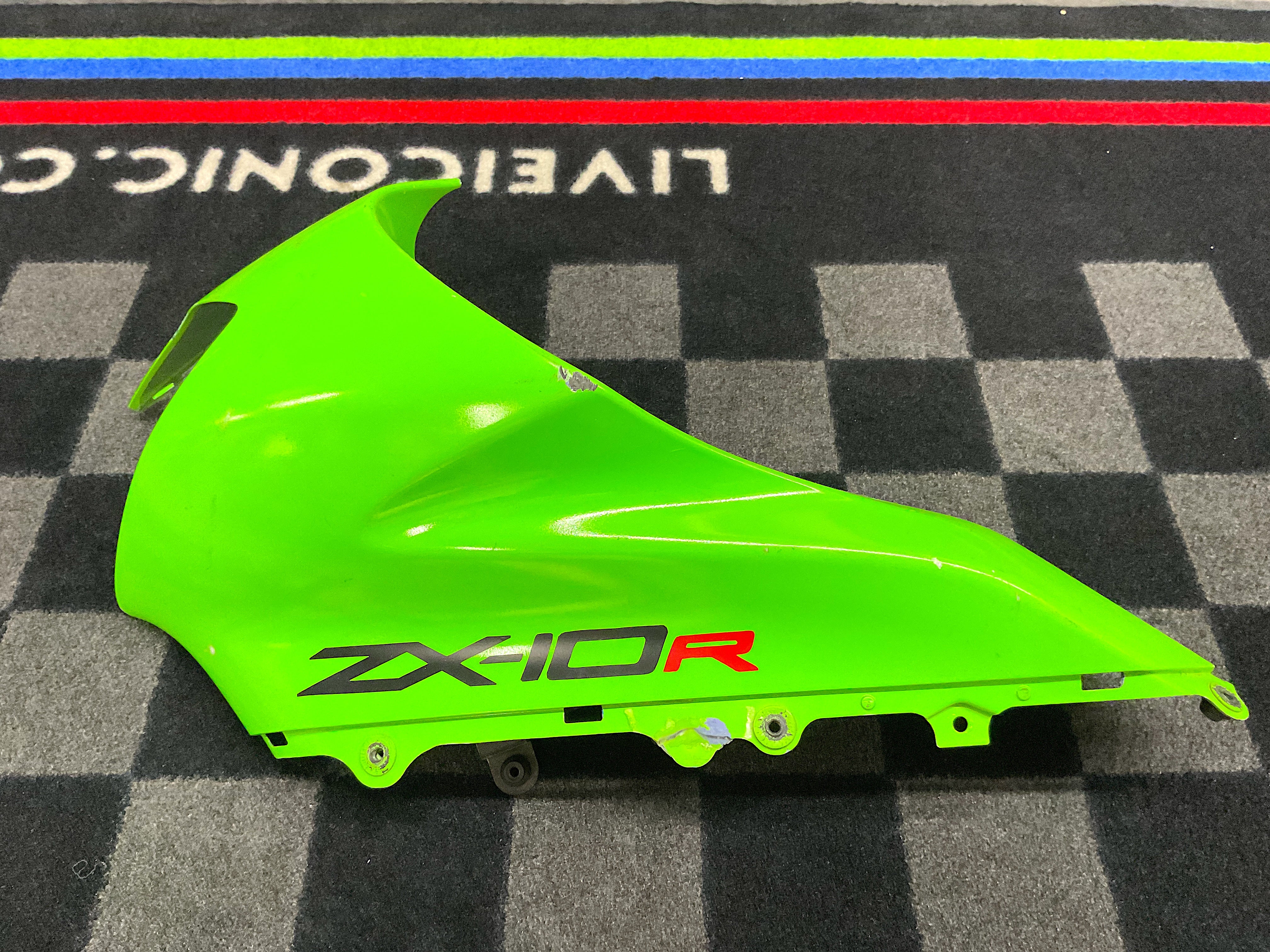 Kawasaki Genuine Parts - OEM stock bodywork/fairings. Good condition, pre-owned, with wear. Scratches, blemishes, several areas that have been addressed. Cosmetic issues can be easily addressed.