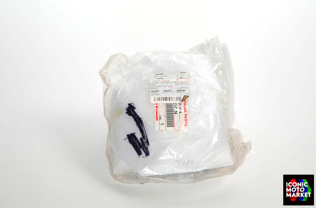 Kawasaki Genuine Parts: Alternator cover. NOS. The item was removed from its original packaging for final inspection and photographic purposes only. This unit will ship in the original package as shown.