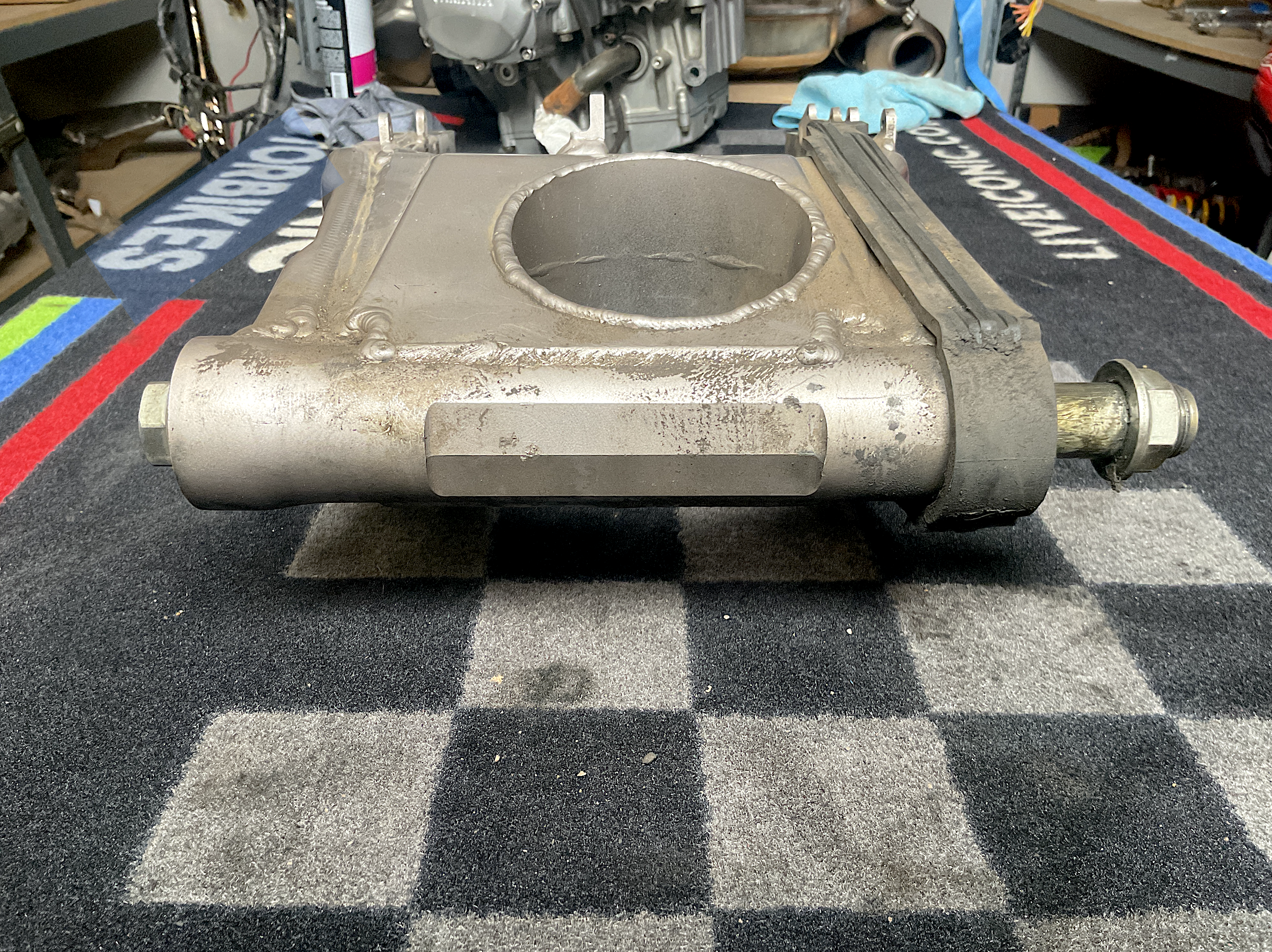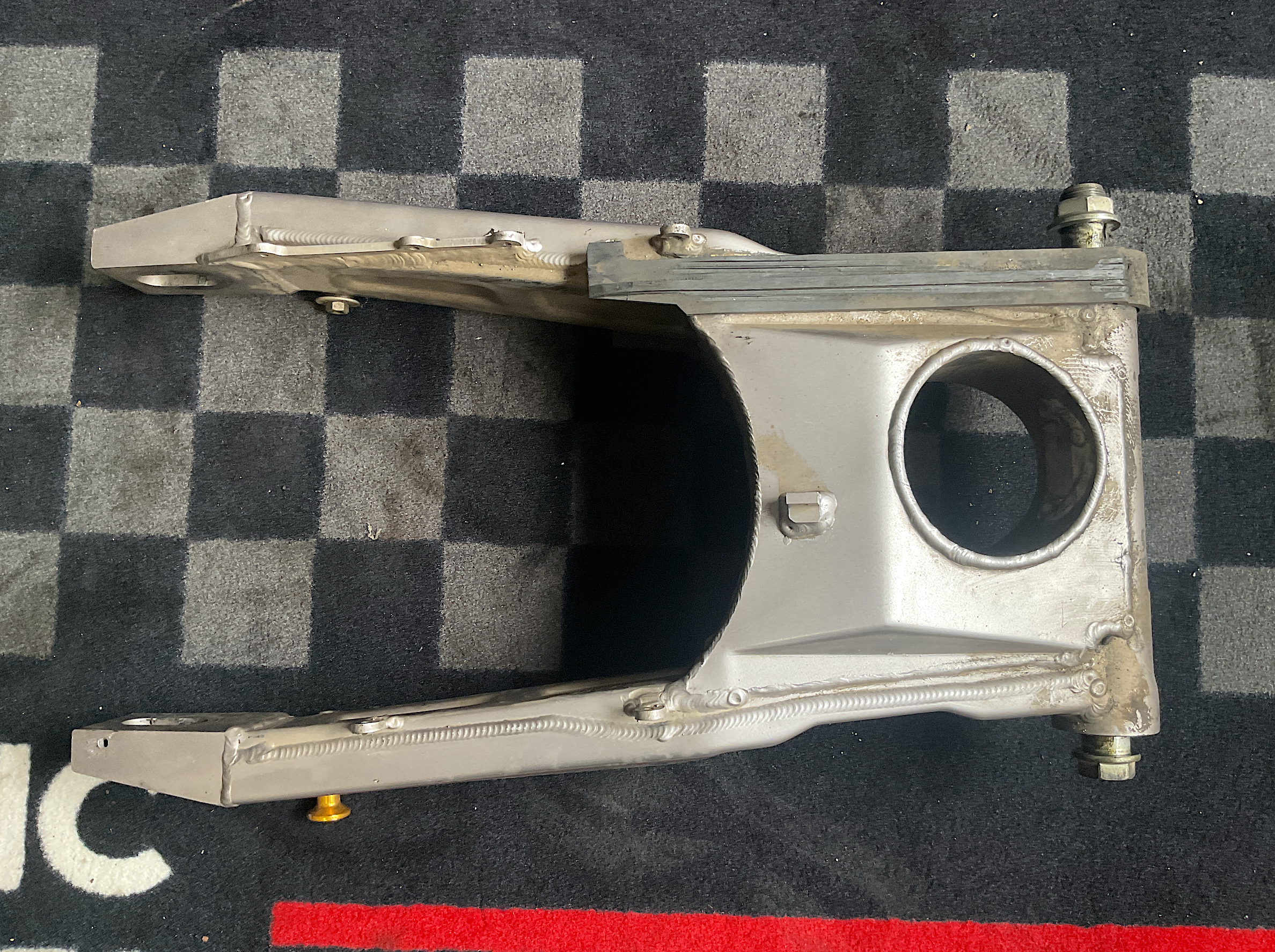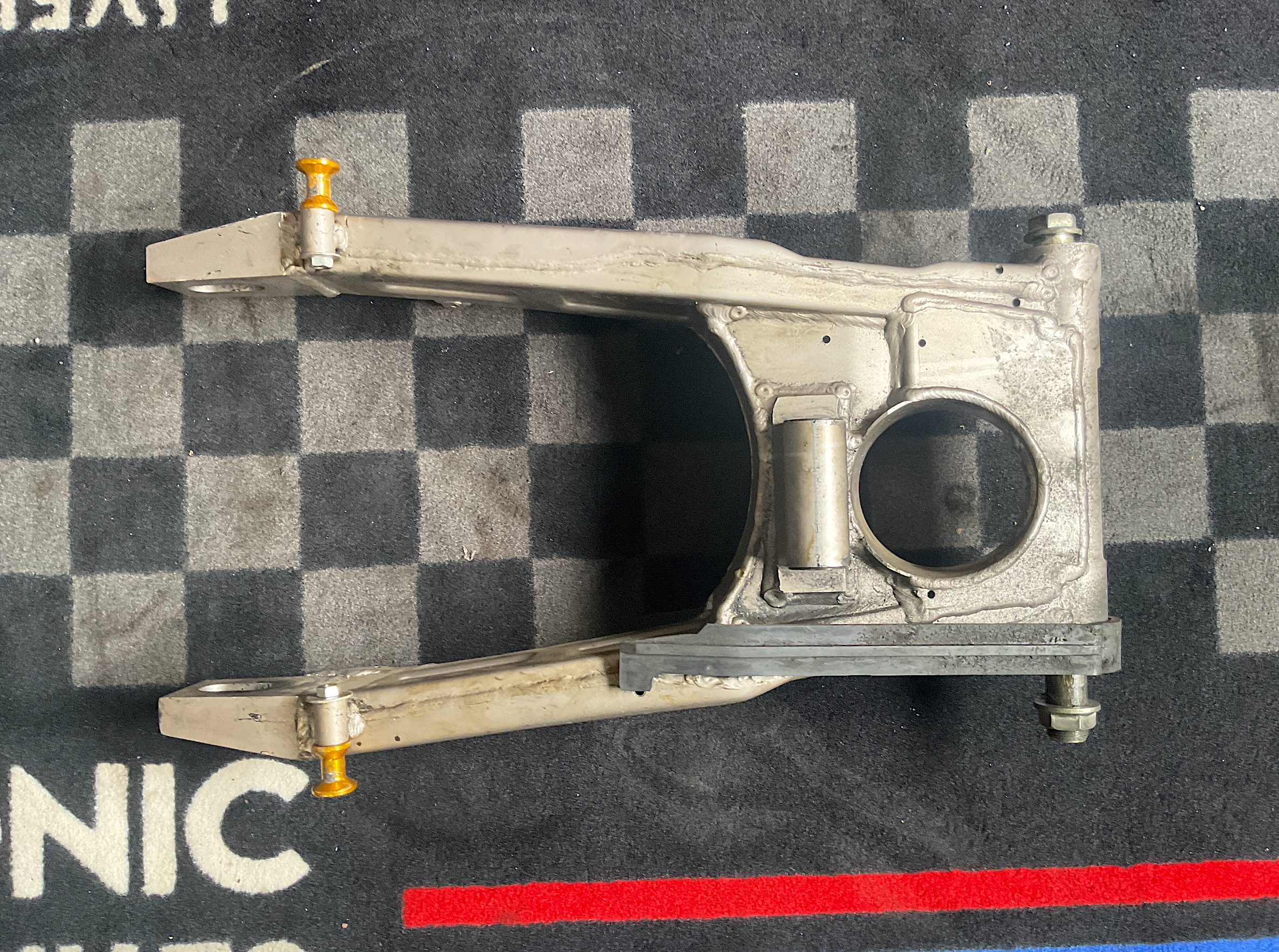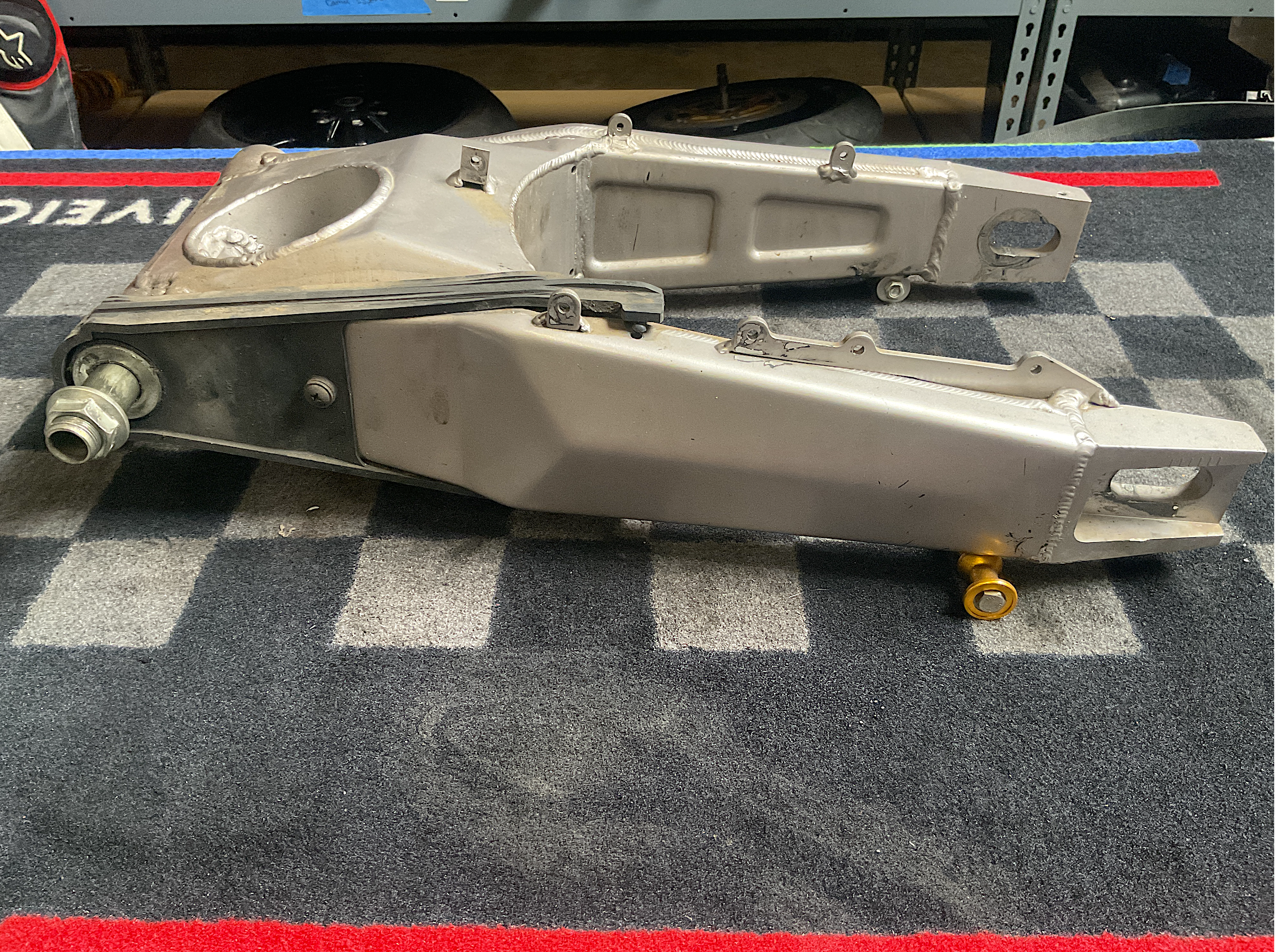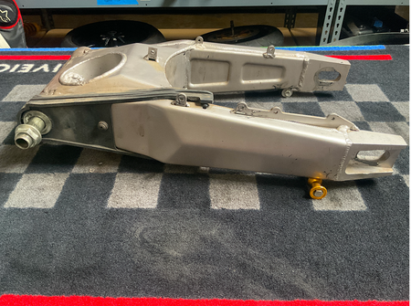 Kawasaki Genuine Parts: Swingarm. Good condition, with regular wear from use - including scratches, dirt. Should clean up well. Lift-stand spools included as shown (see pics). Sold as-is.