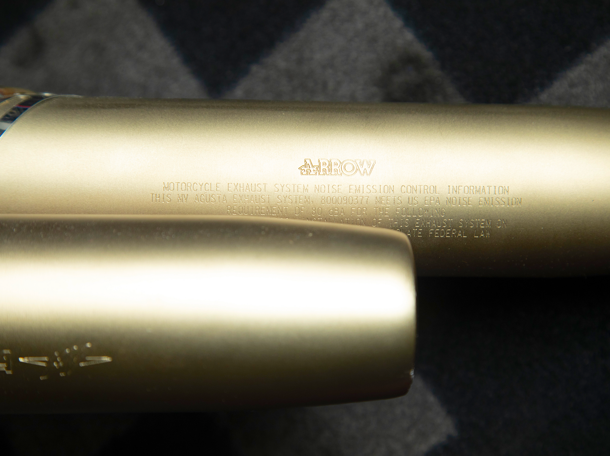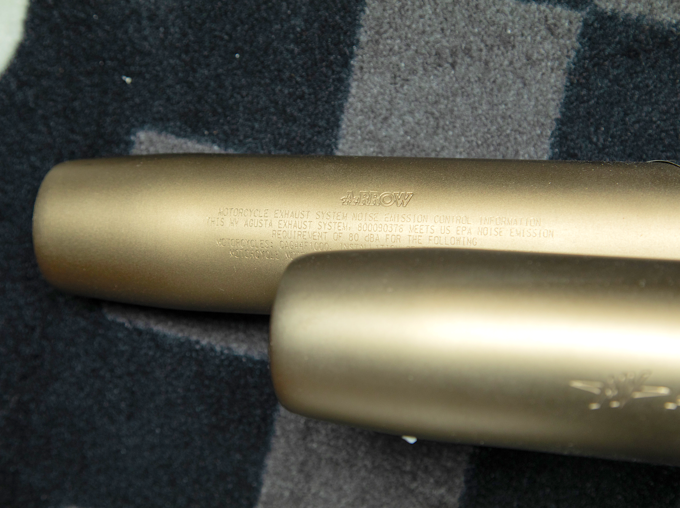 MV Agusta Quality Parts: Arrow exhaust silencers. Very good condition. Stored in original box. This system is quite clean, with only a few minor imperfections (see pics #12, 13). Sold as shown, as-is.