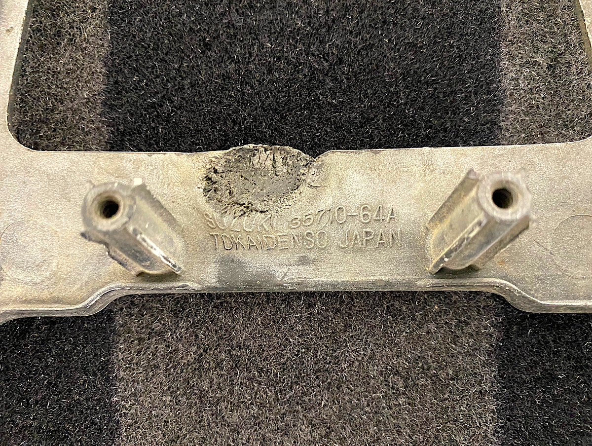Suzuki Genuine Part: Tail-light bezel. Fair condition, pre-owned, with wear. Will require some attention to restoration. Sold as shown, as-is.