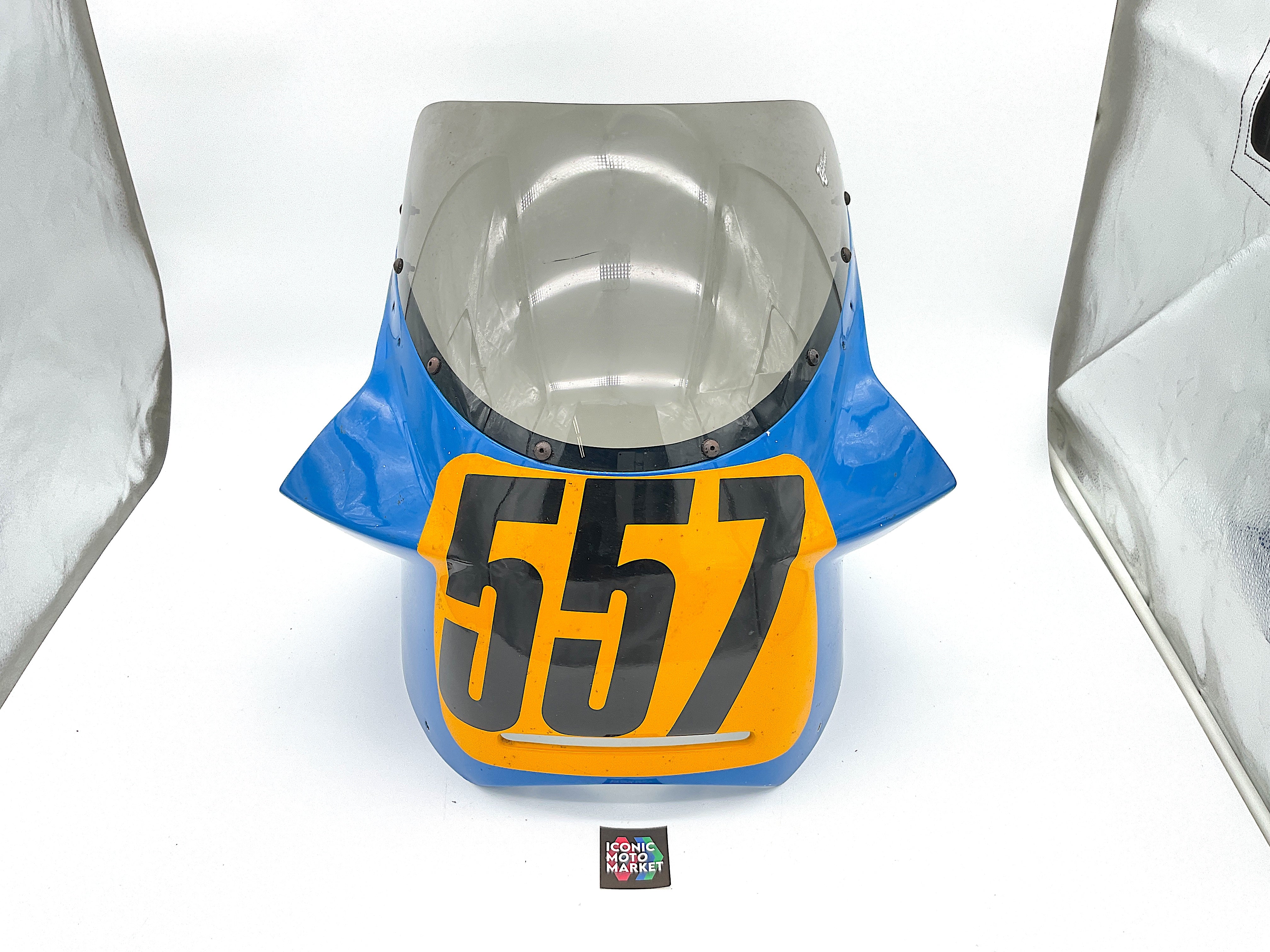 This aftermarket upper cowl appears to have been set up for vintage racing, although all indications show us that it could be reverted back to street-use. Sold complete as shown, as-is.