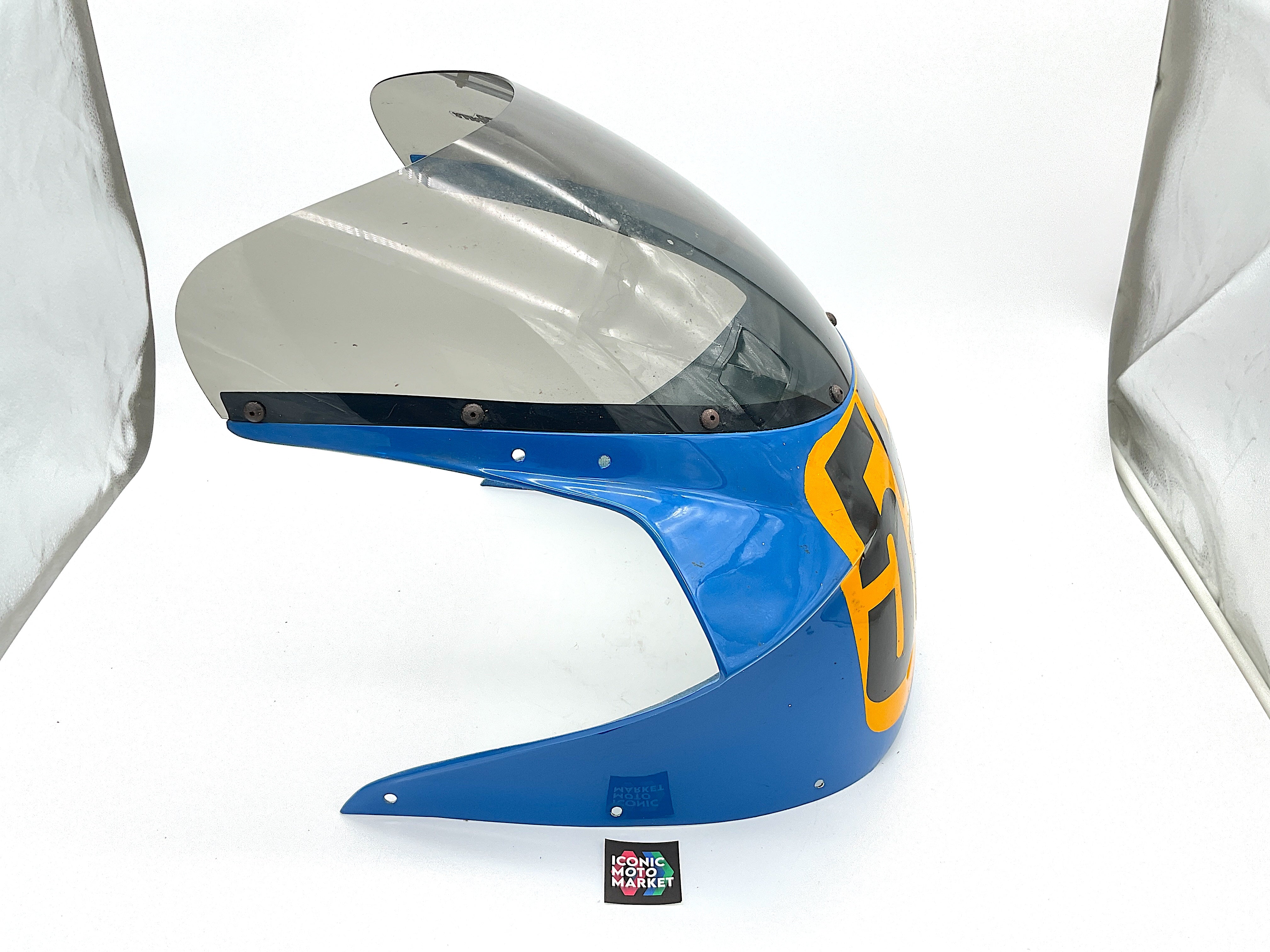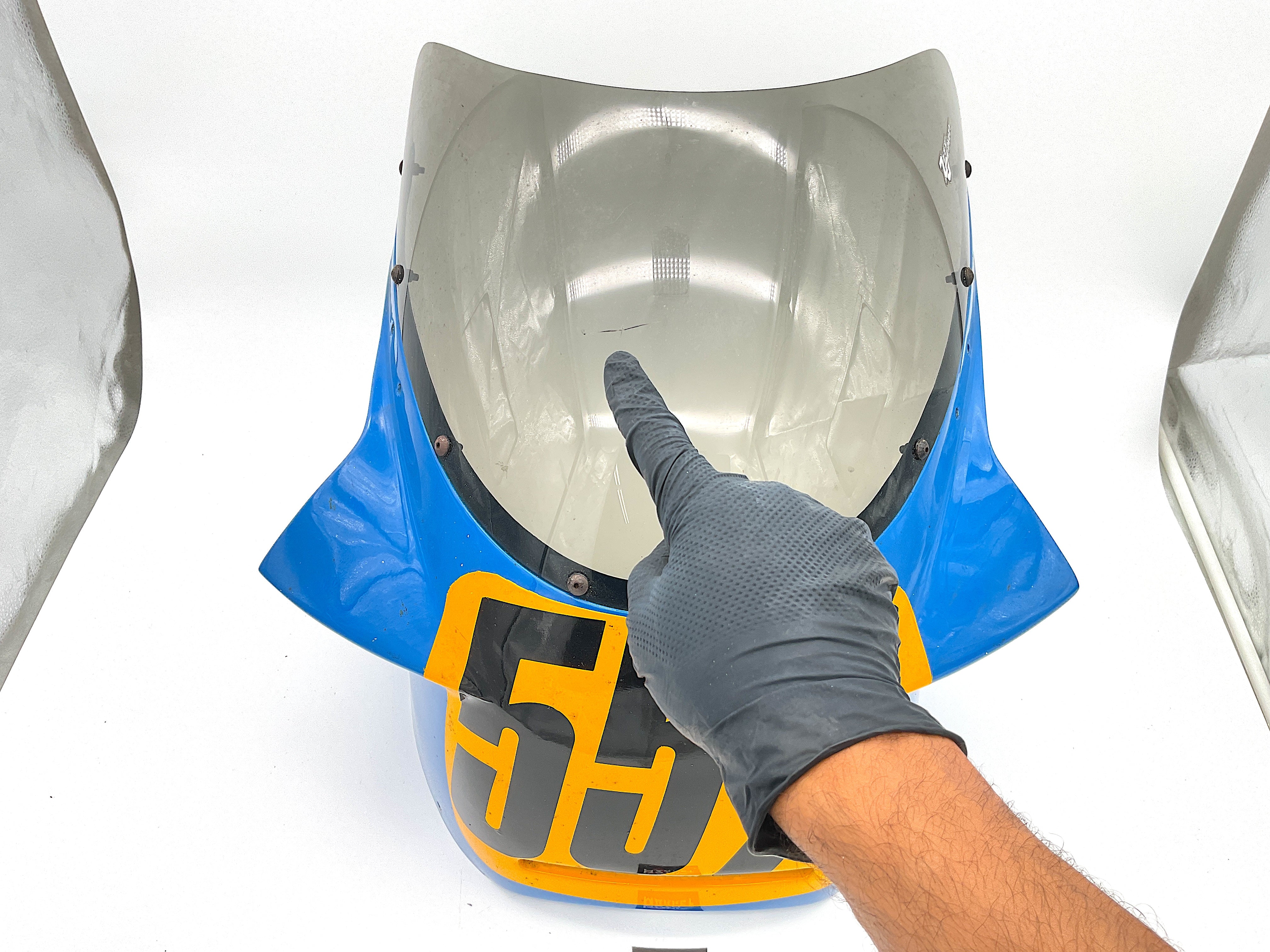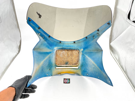 Aftermarket, fiberglass front upper cowl, with included quality brand - Zero Gravity tinted windscreen. Good used condition, with light wear. The aftermarket windscreen has a single blemish. (see pic #4).
