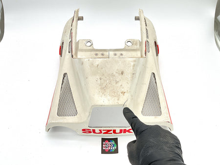 Suzuki Genuine Parts - Original tail seat cowl. Good condition. Pre-owned, with wear. All tabs are intact. One small fracture at rear (see pic #6). Light scratches, scuffs. This piece should clean up well. Sold as shown, as-is. (see pics)