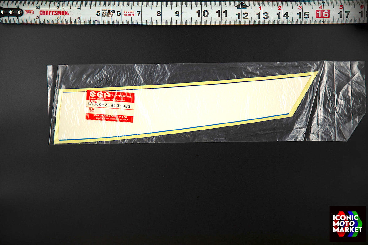 Suzuki part #68680-21A10-9ES: Decal, lower right side-fairing. NOS (OEM)