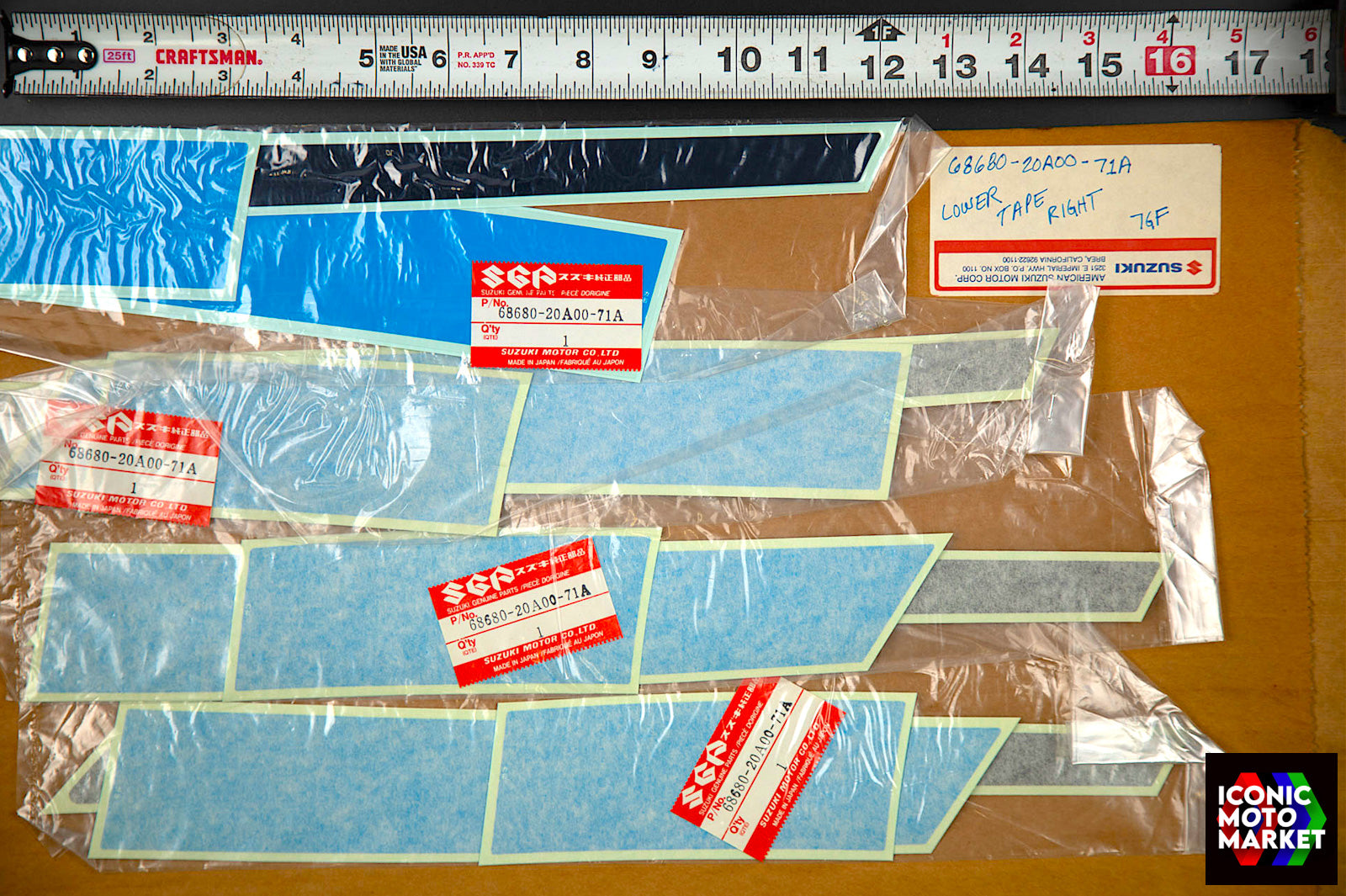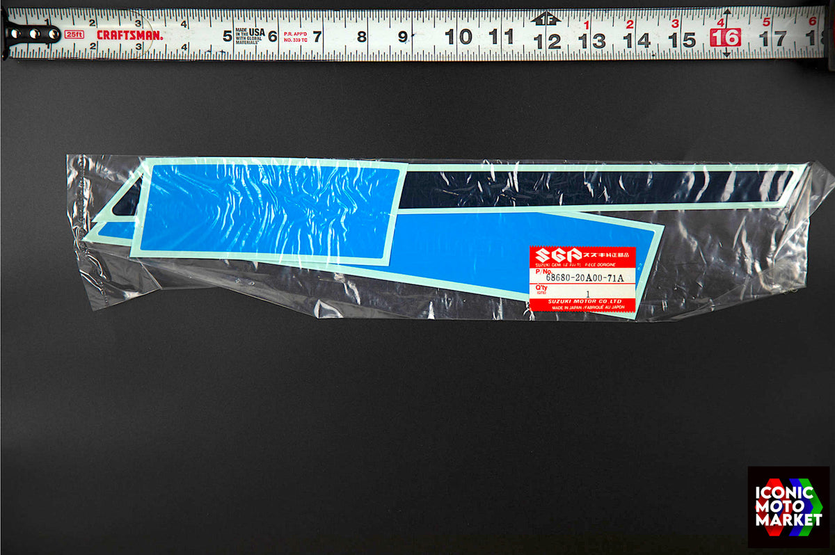 Suzuki part #68680-20A00-71A: Decals, lower right side-fairing. NOS (OEM)
