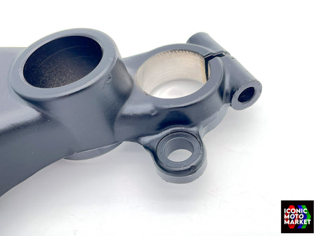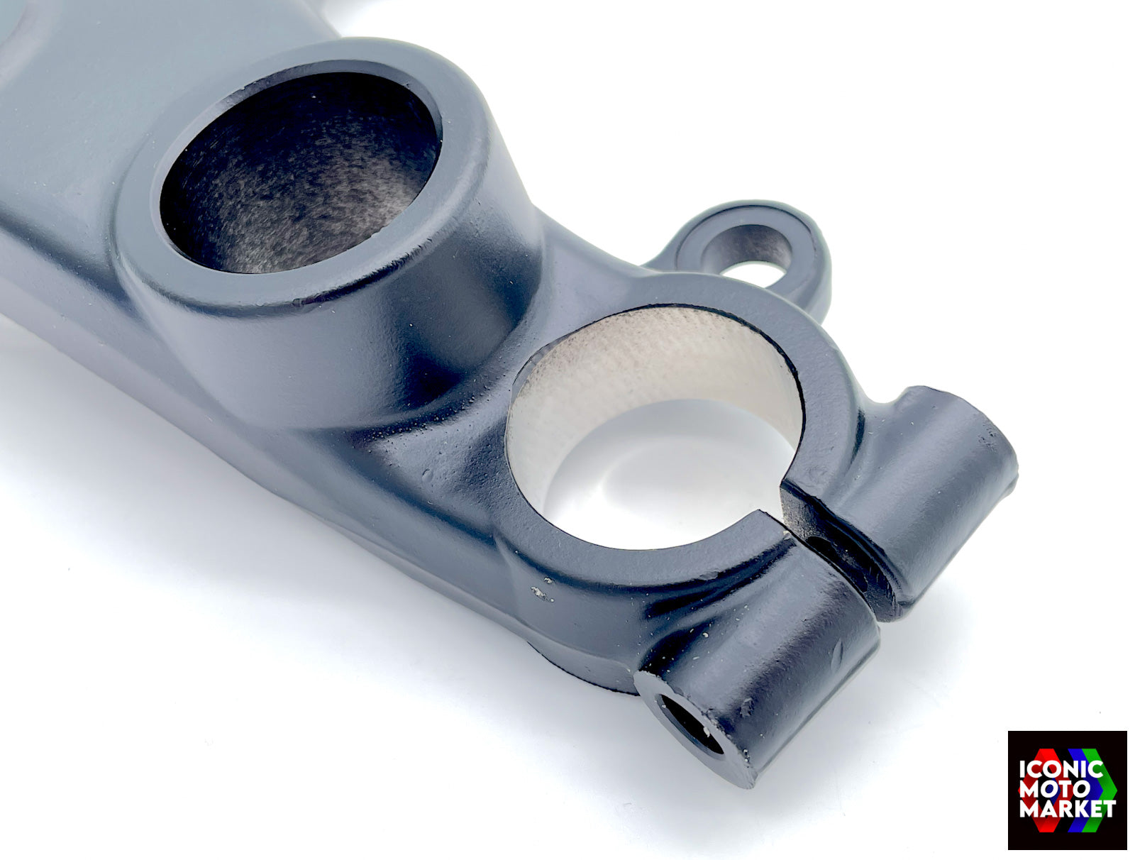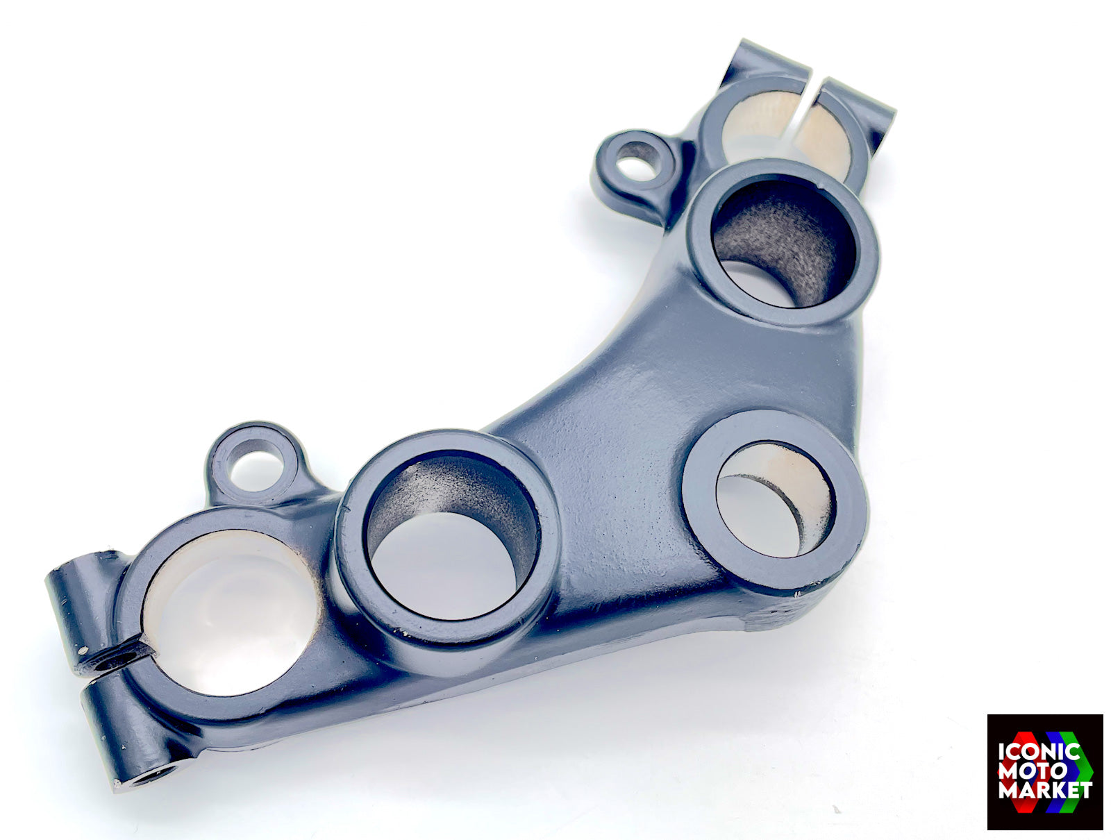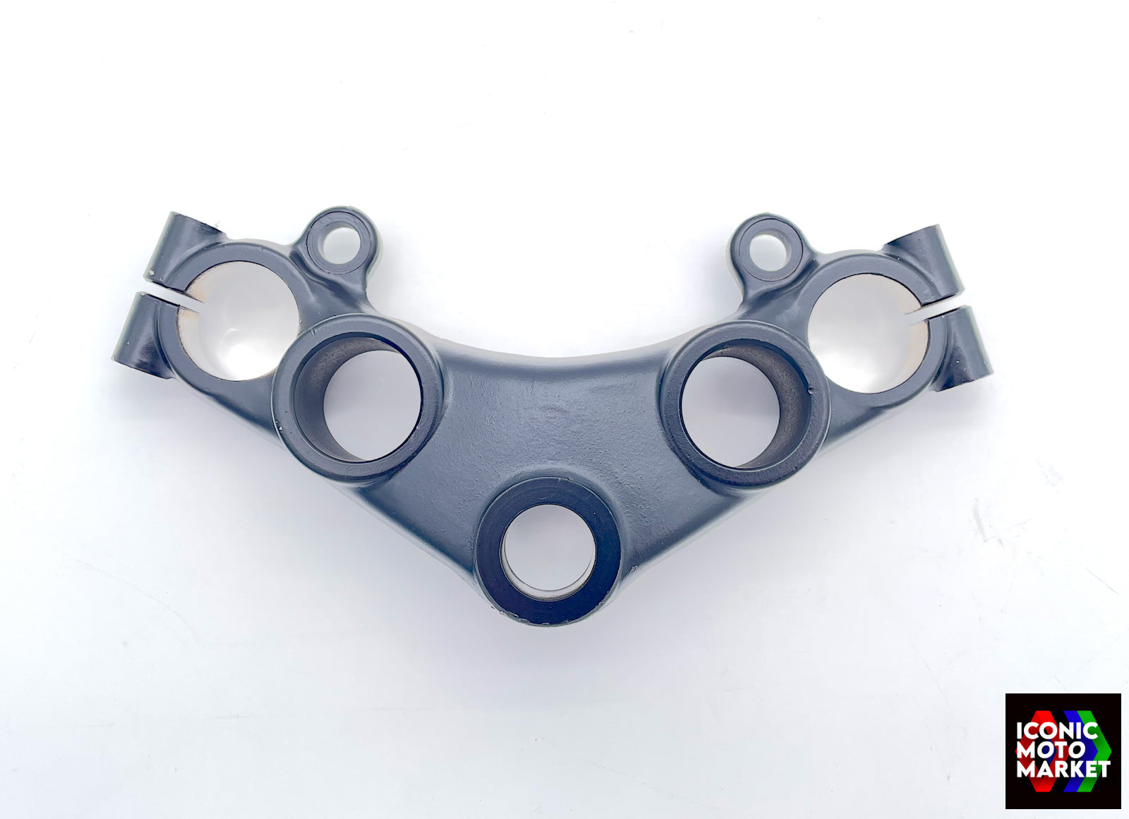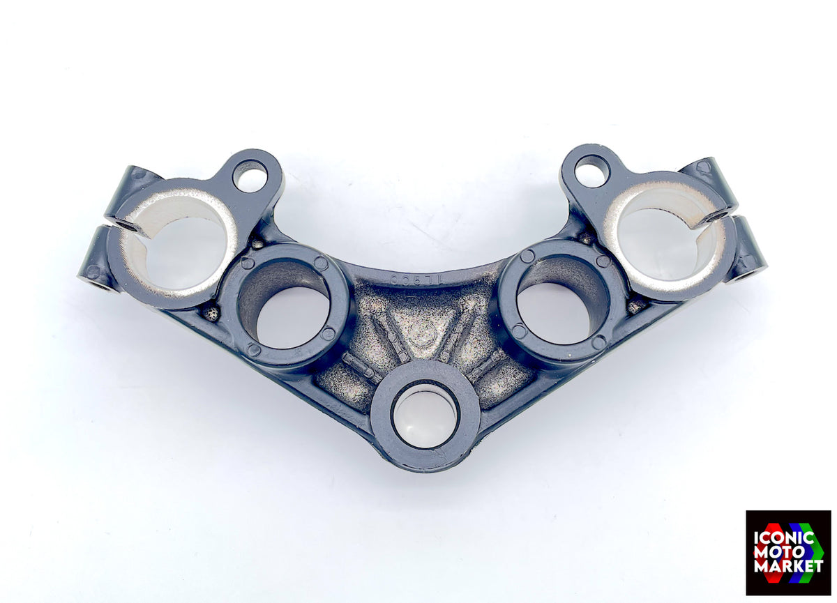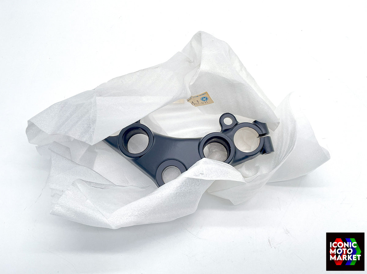 Yamaha Genuine Parts: Upper triple clamp. NOS. This part was temporarily removed from the original packaging for final inspection and photographic purposes only. The unit will ship in the original wrap - as shown. Sold as-is.