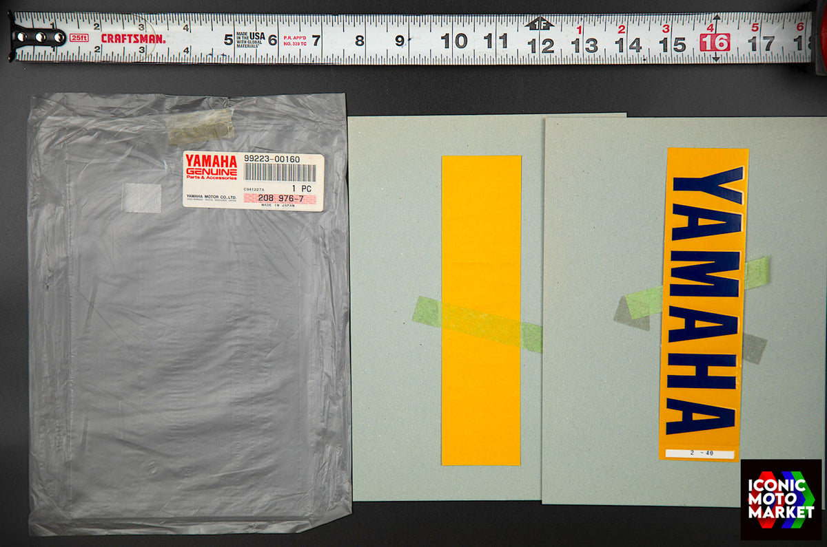 Yamaha part #99223-00160: Navy logo, yellow background. NOS (OEM)
