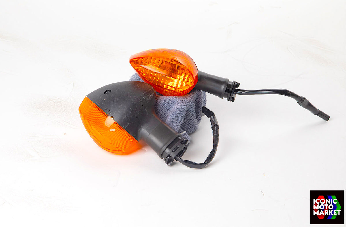 Yamaha Genuine Parts: Front turn signals, set. Good condition, pre-owned, light wear. Further inspection of the set reveals cosmetic blemishes to the right-side when faced down. The lights have not been tested. Sold as shown, as-is. All sales are final.